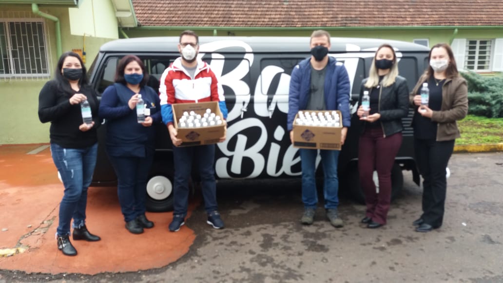 Nessa manhã (13/08), servidores do Campus Panambi, em parceria com a Bart Bier Cervejaria Artesanal, realizaram a entrega de 450 unidades de álcool glicerinado 80%. 400 unidades foram destinadas à Prefeitura Municipal de Panambi, para distribuição via Secretaria Municipal de Desenvolvimento Social e Habitação, e 50 unidades foram doadas ao Lar de Idosos Tabea.