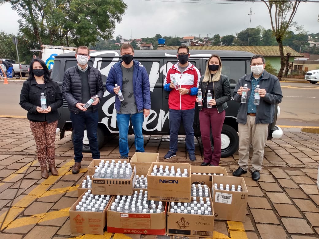 Hoje, 27/08, a produção de álcool glicerinado 80% foi destinada aos municípios vizinhos de Condor e Santa Bárbara do Sul. Cada município recebeu a doação de 420 unidades de álcool, sendo 400 destinadas às Prefeituras Municipais e 20 unidades para a Brigada Militar de cada município.