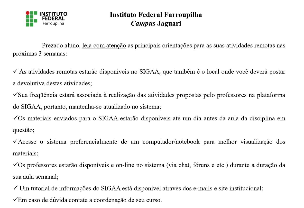 Recomendamos, que após a ativação, os estudantes atualizem seu e-mail de contato no SIGAA para o novo e-mail institucional do IFFar.