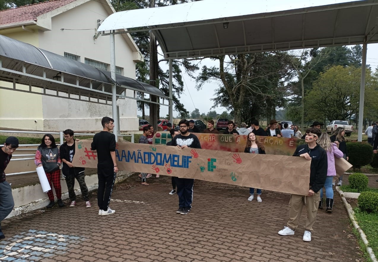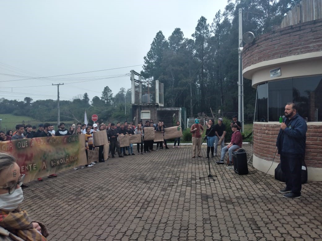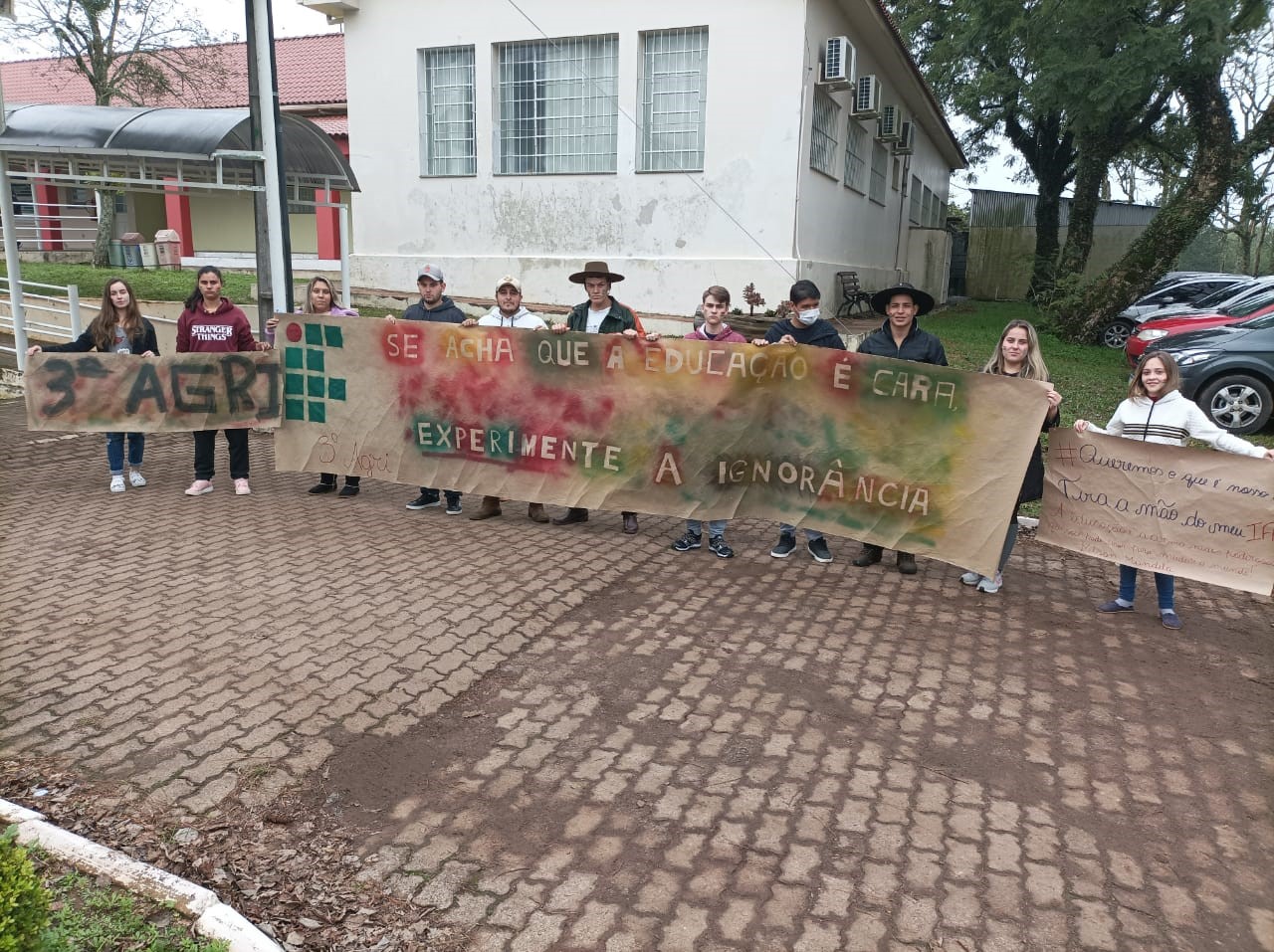 Aconteceu na quinta-feira (09/06), em frente ao Pórtico de entrada do IFFar Campus Jaguari, a manifestação organizada pelo movimento Estudantil, contra o bloqueio orçamentário para os Institutos Federais e Universidades Federais, que já vem se transformando em cortes, desde o atual momento.