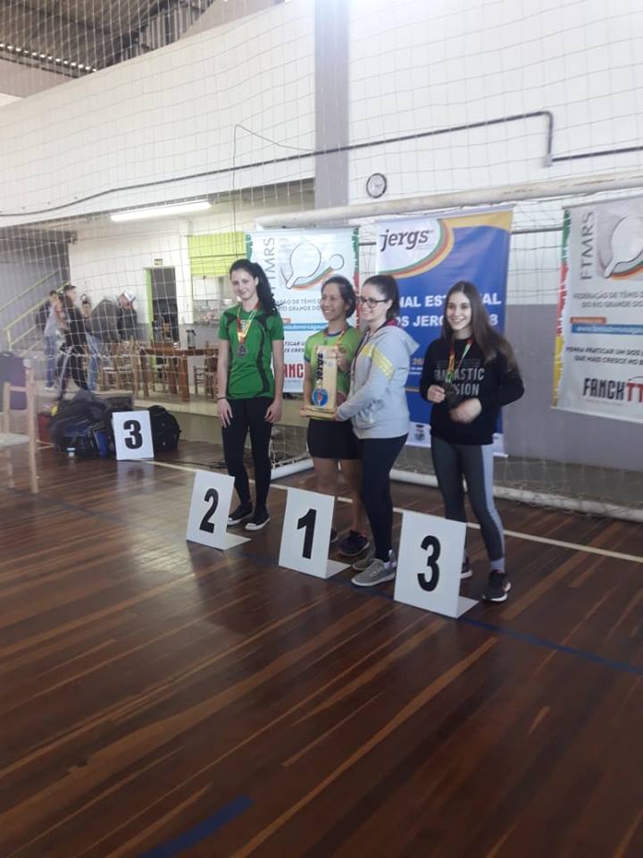 Os esportistas do Curso Técnico em Sistemas de Energia Renovável estão se destacando no estado e região. A aluna Jayne Bizzaco Lopes do 2º ano do curso Técnico em Sistemas de Energia Renovável campus Jaguari, conquistou a medalha de prata na modalidade Tênis de mesa, nos JERGS 2018, final realizada em Dois Irmãos, no dia 26 de agosto de 2018. Os JERGS são promovidos pela Secretaria de Estado da Educação, através da Assessoria de Esporte Educacional do Departamento Pedagógico e executados pelas Coordenadorias Regionais de Educação, em parceria com as prefeituras municipais e a comunidade escolar gaúcha.