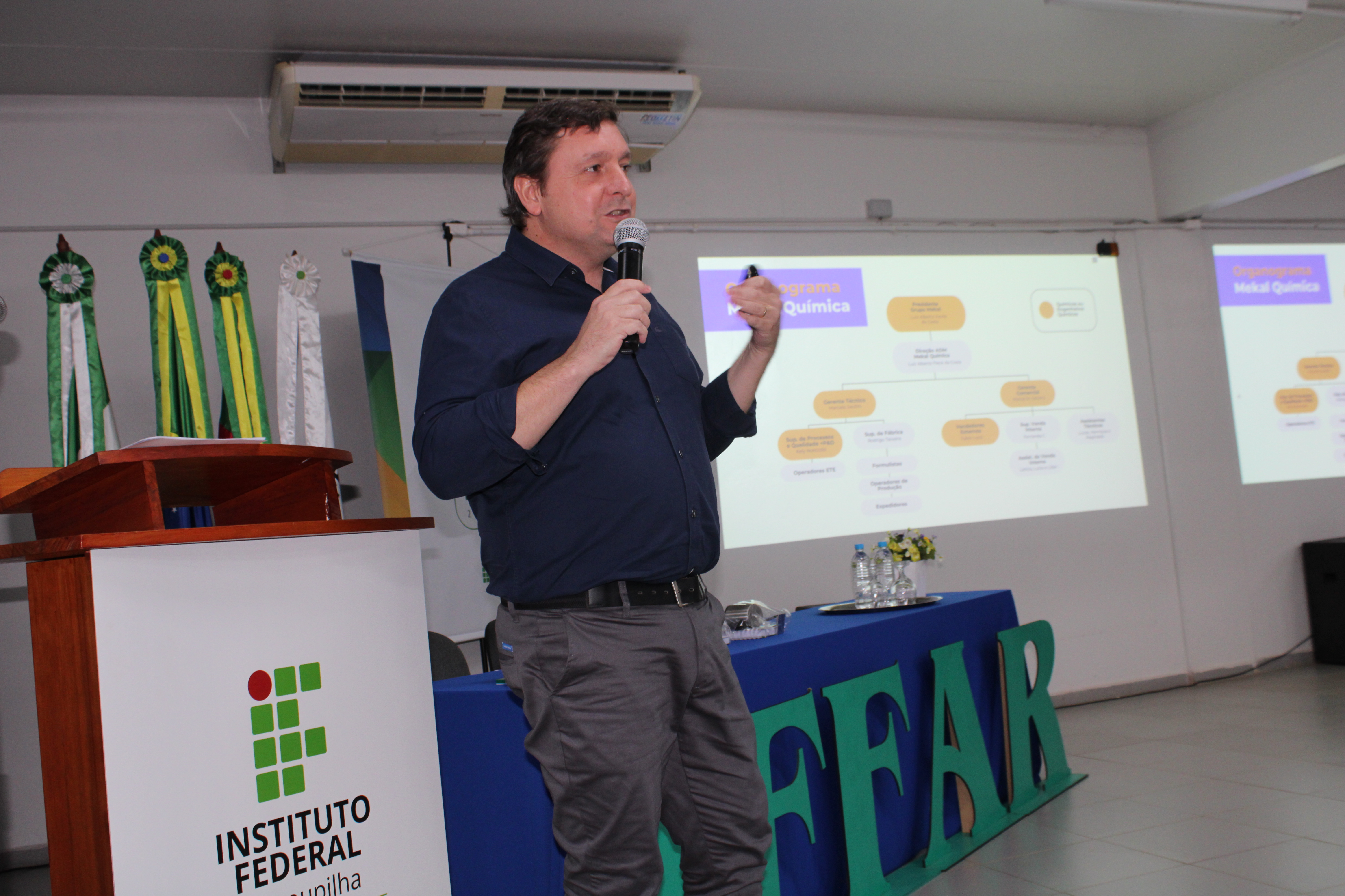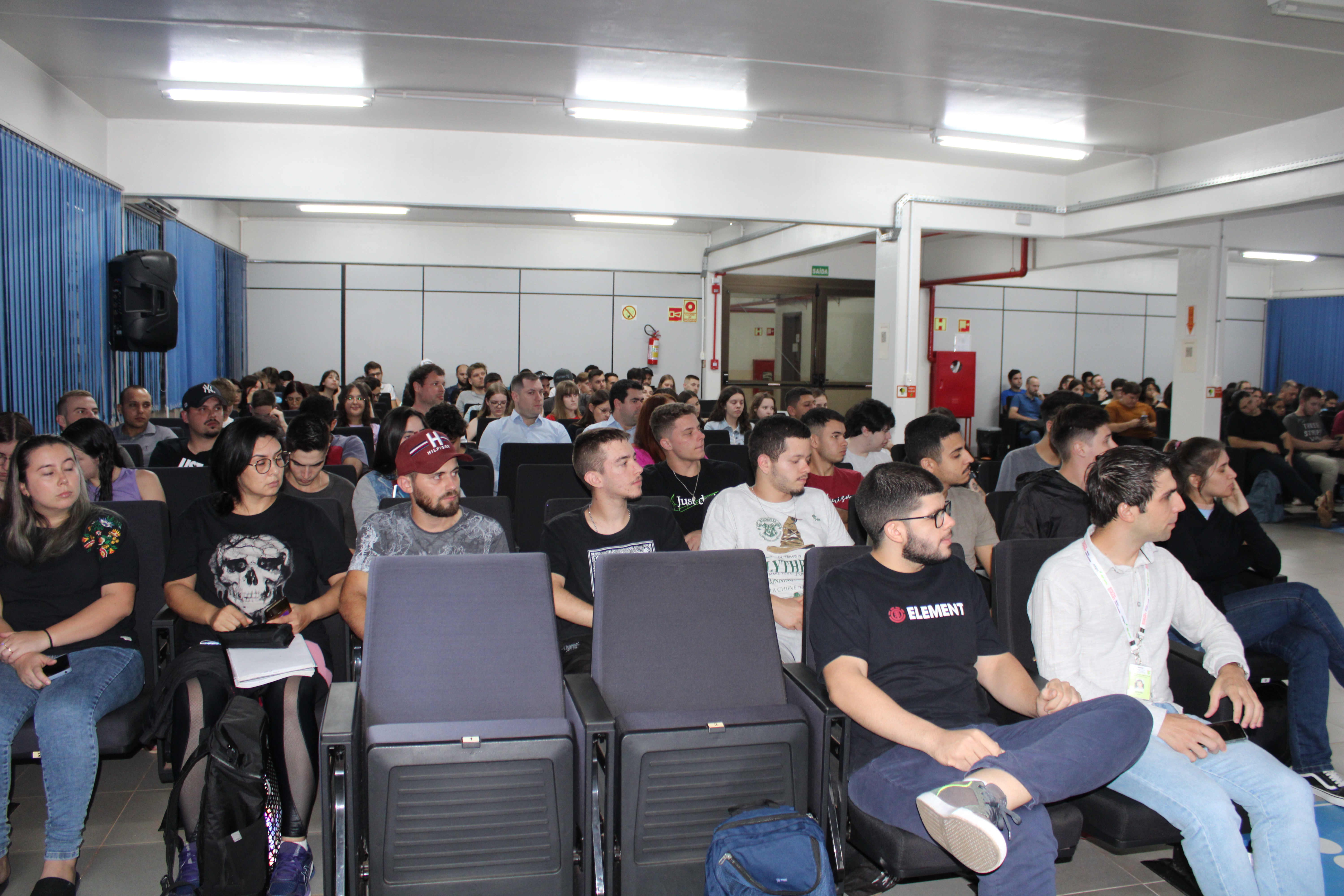 Com o auditório lotado, o público presenciou a fala do Sr. Marcel Manke Selvero, Gerente Comercial da Mekal Química, que abordou “Os desafios e oportunidades da indústria química”; e do Sr. Alejandro Meyer, Gerente de Pesquisa, Desenvolvimento e Inovação da Fockink Indústrias Elétricas, que discorreu sobre "As transformações da indústria, a melhoria contínua dos processos e o papel do/a profissional de Engenharia de Controle e Automação".