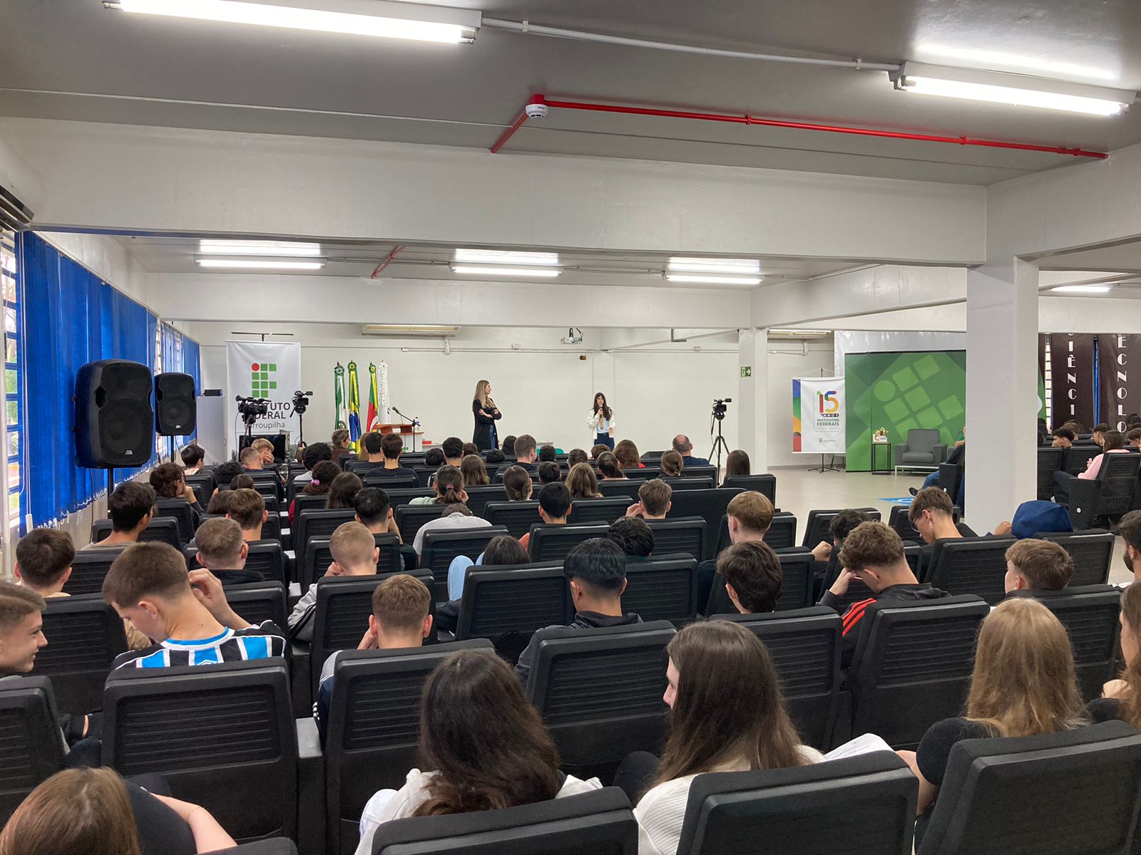 No dia 23/05, os alunos dos cursos de ensino médio integrado participaram de uma fala de incentivo à participação na prova da OBMEP 2024, contando com a presença da aluna Daniela (EEEM Poncho Verde), medalhista de ouro da OBMEP 2023.