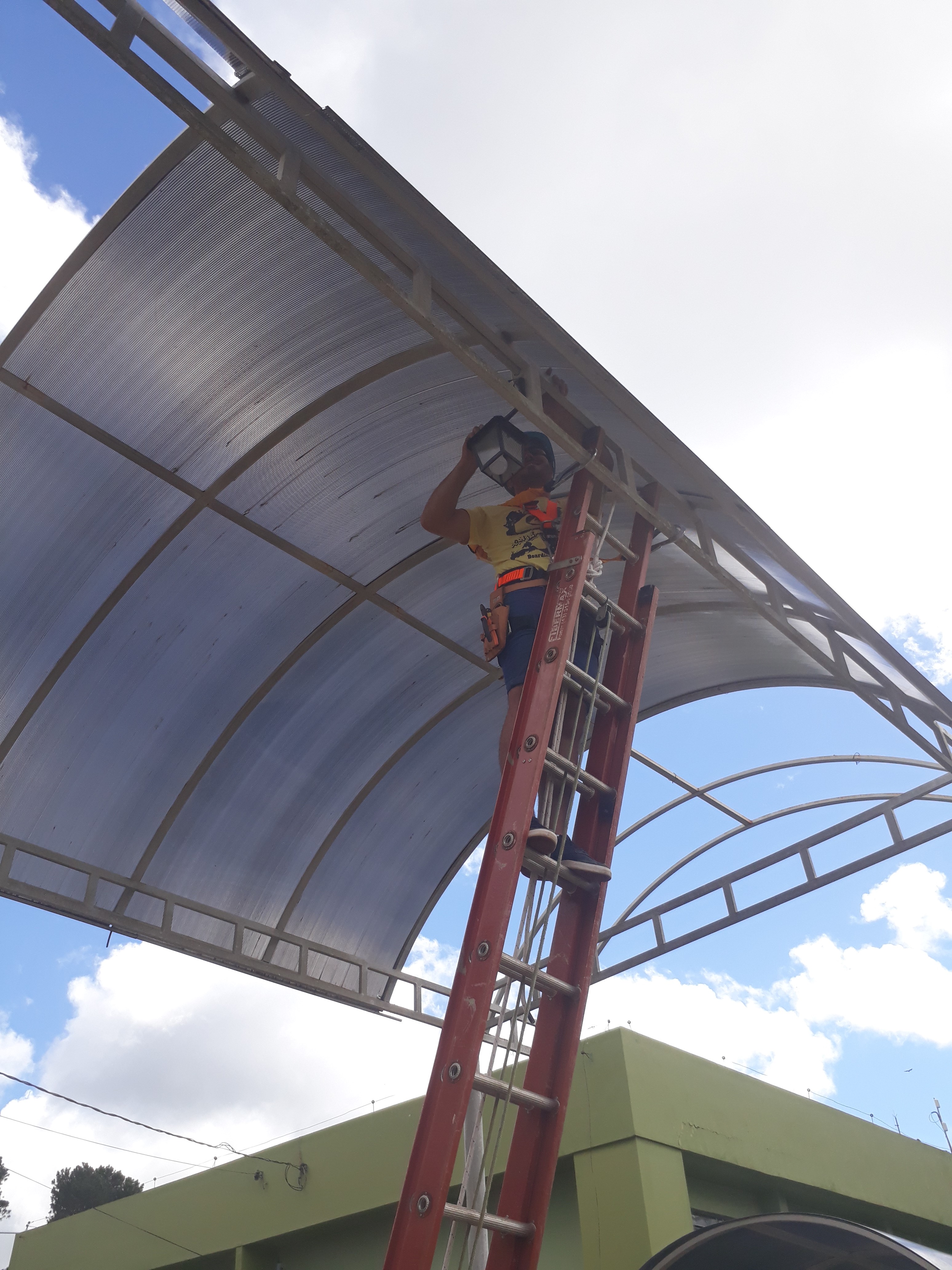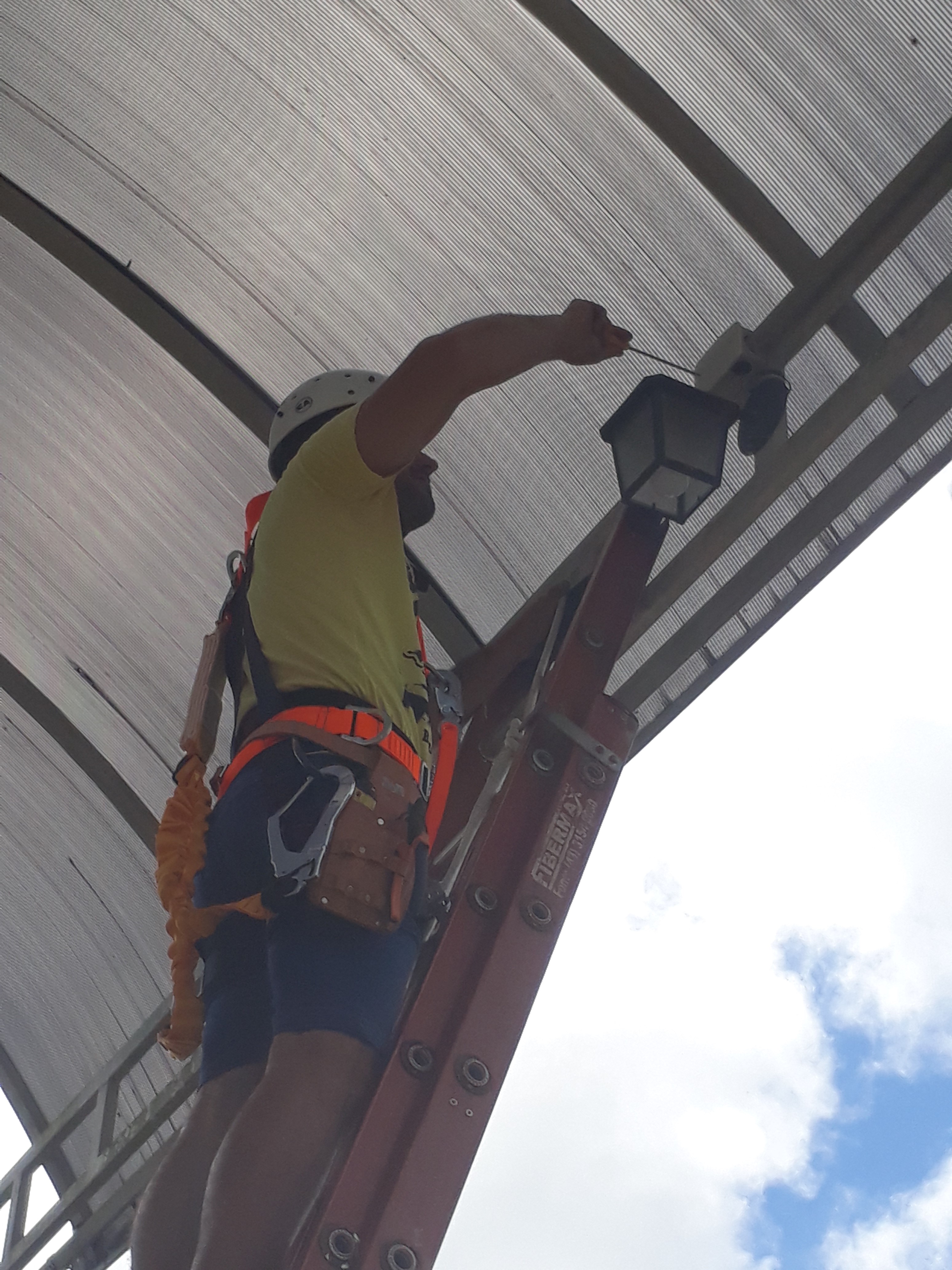 Os alunos do curso FIC de Eletricista Instalador Predial de Baixa Tensão realizaram a manutenção e modernização do sistema de iluminação das passarelas do campus Jaguari. A prática, prevista no plano de ensino do curso, compreende uma contrapartida do projeto para o campus.