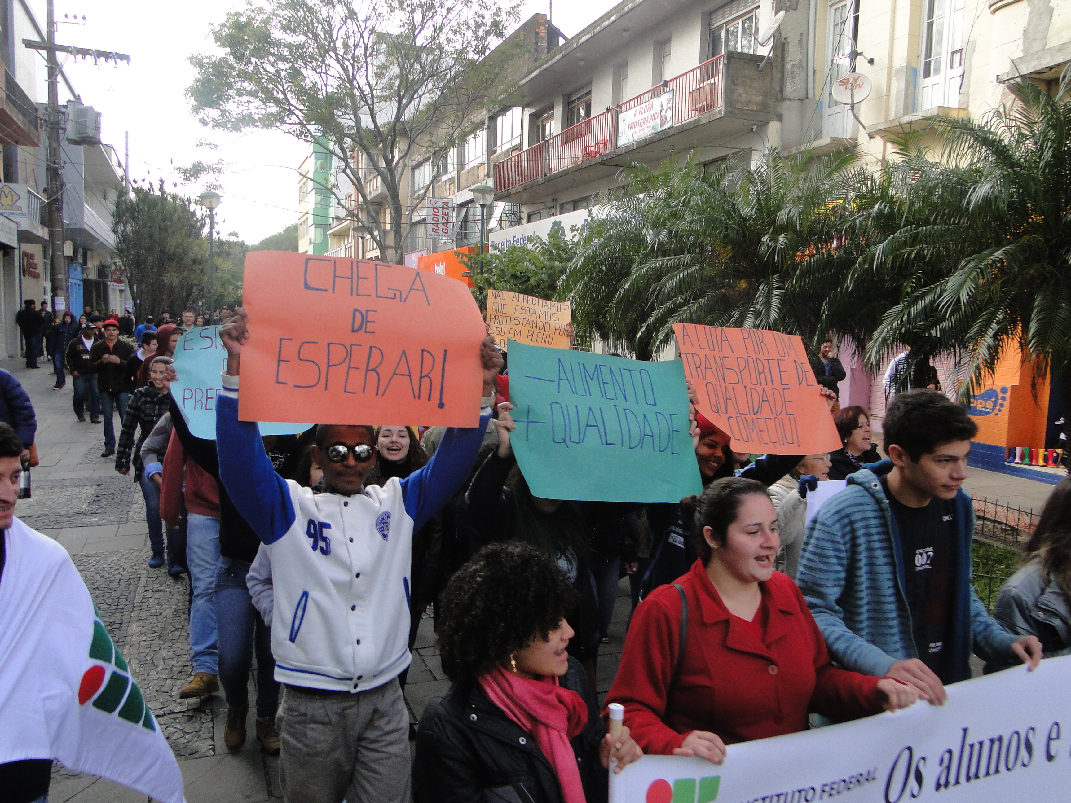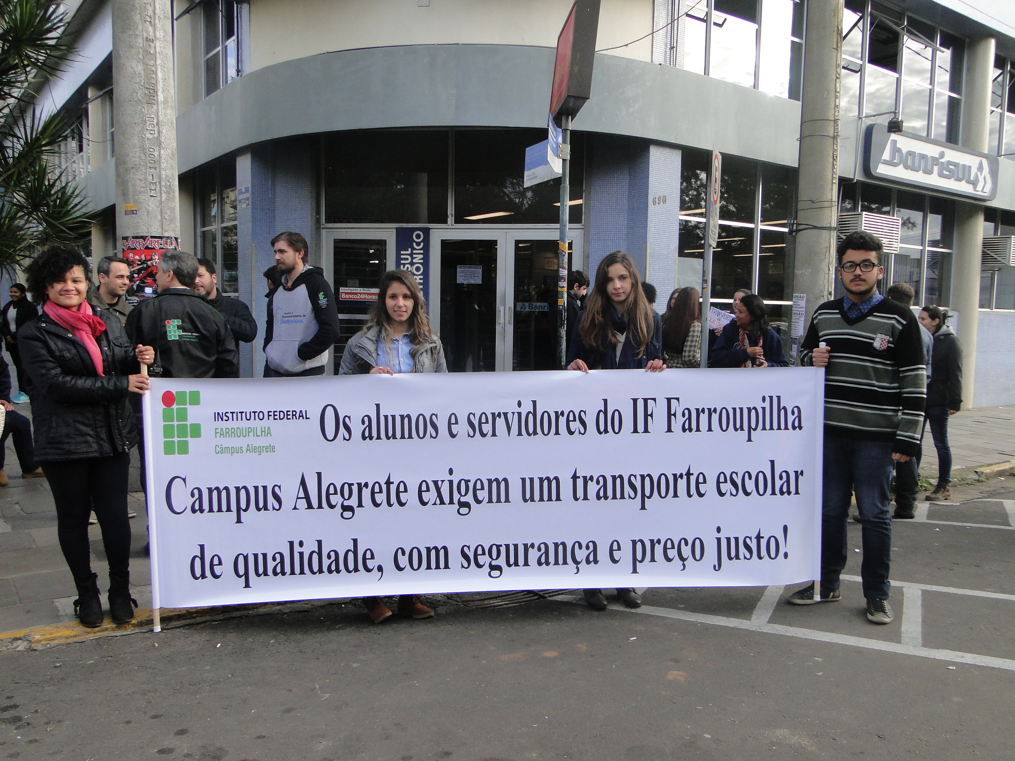 Durante o tempo ocupado, o Diretor de Administração, Alexandre Machado, e os representantes dos alunos, Jefferson Carvalho e Gabriel Brener, explanaram aos presentes sobre as necessidades do transporte até o Campus. O aluno Jefferson Carvalho explicou sobre o esforço da instituição, junto à Prefeitura Municipal, para que haja um transporte coletivo até o IF Farroupilha. Aproveitando-se da presença do Prefeito Erasmo Guterres, os alunos cobraram uma posição. O Prefeito manifestou-se e garantiu um contrato emergencial para o transporte dos alunos e servidores até o Campus, até que se efetive uma licitação.