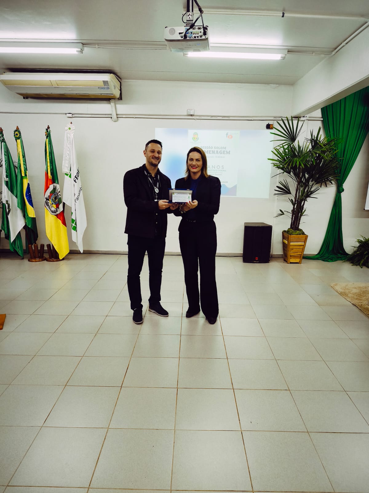 Durante a cerimônia, o IFFar – Campus Panambi recebeu uma placa de homenagem, simbolizando o reconhecimento ao trabalho de excelência realizado pela instituição desde o início de suas atividades, em 2010.