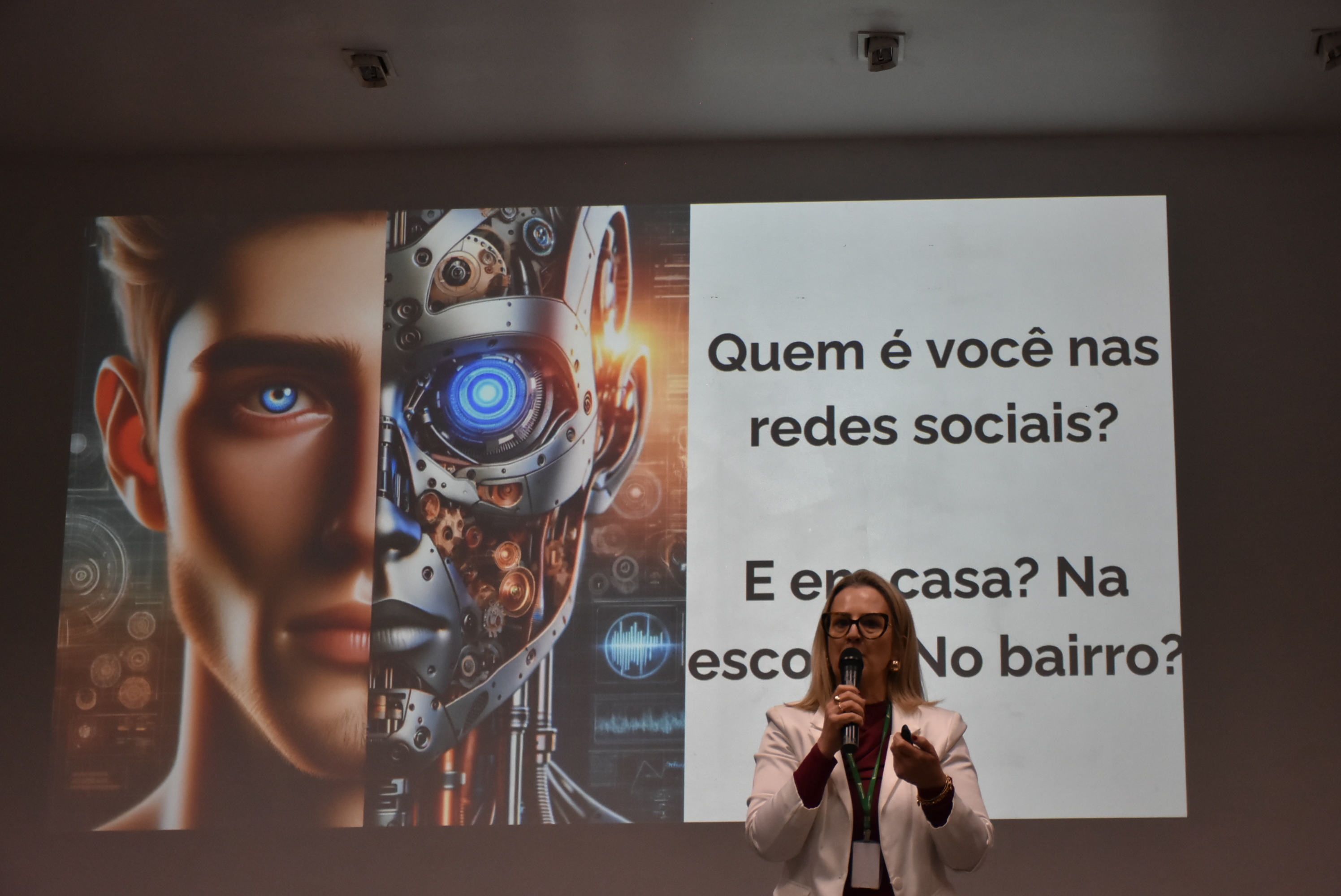 Um dos momentos de destaque foi a palestra sobre responsabilidade digital, ministrada pela Diretora de Ensino do campus. Neste momento, foram abordados temas essenciais para o presente e o futuro dos jovens em ambientes digitais: os impactos do uso das redes sociais, ética na comunicação online, privacidade, cuidado com fake news, além dos direitos e deveres enquanto cidadãos digitais. A Diretora de Ensino enfatizou que, no cenário atual, liderar também é saber identificar riscos, promover um comportamento consciente e respeitoso na internet — pois o mundo real e o virtual estão cada vez mais interligados.
