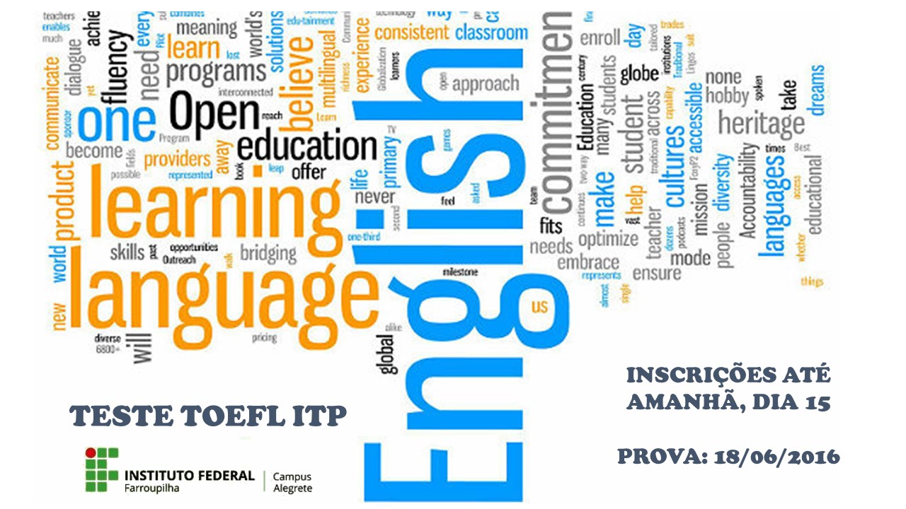 Tanto alunos (graduação ou pós-graduação) quanto servidores (Docente e TAE) do IF Farroupilha poderão se inscrever gratuitamente no TOEFL ITP, até amanhã, dia 15, em http://isfaluno.mec.gov.br/