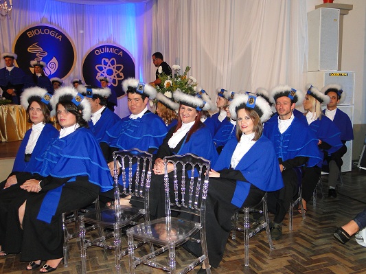 O IF Farroupilha comemorou junto com 12 formandos do Curso Superior de Tecnologia em Análise e Desenvolvimento de Sistemas e 11 de Licenciatura em Ciências Biológicas, oito de Matemática e cinco de Química.