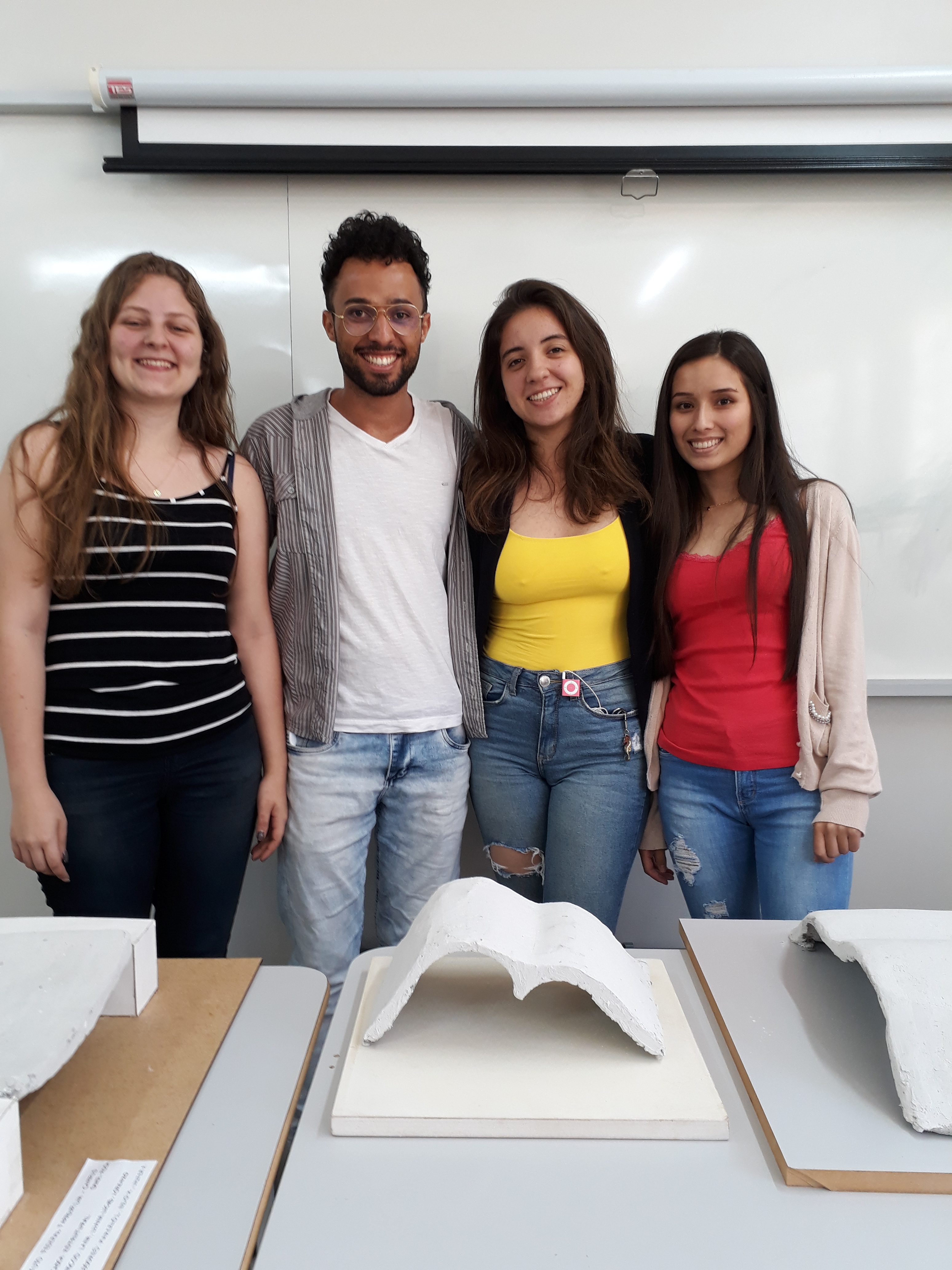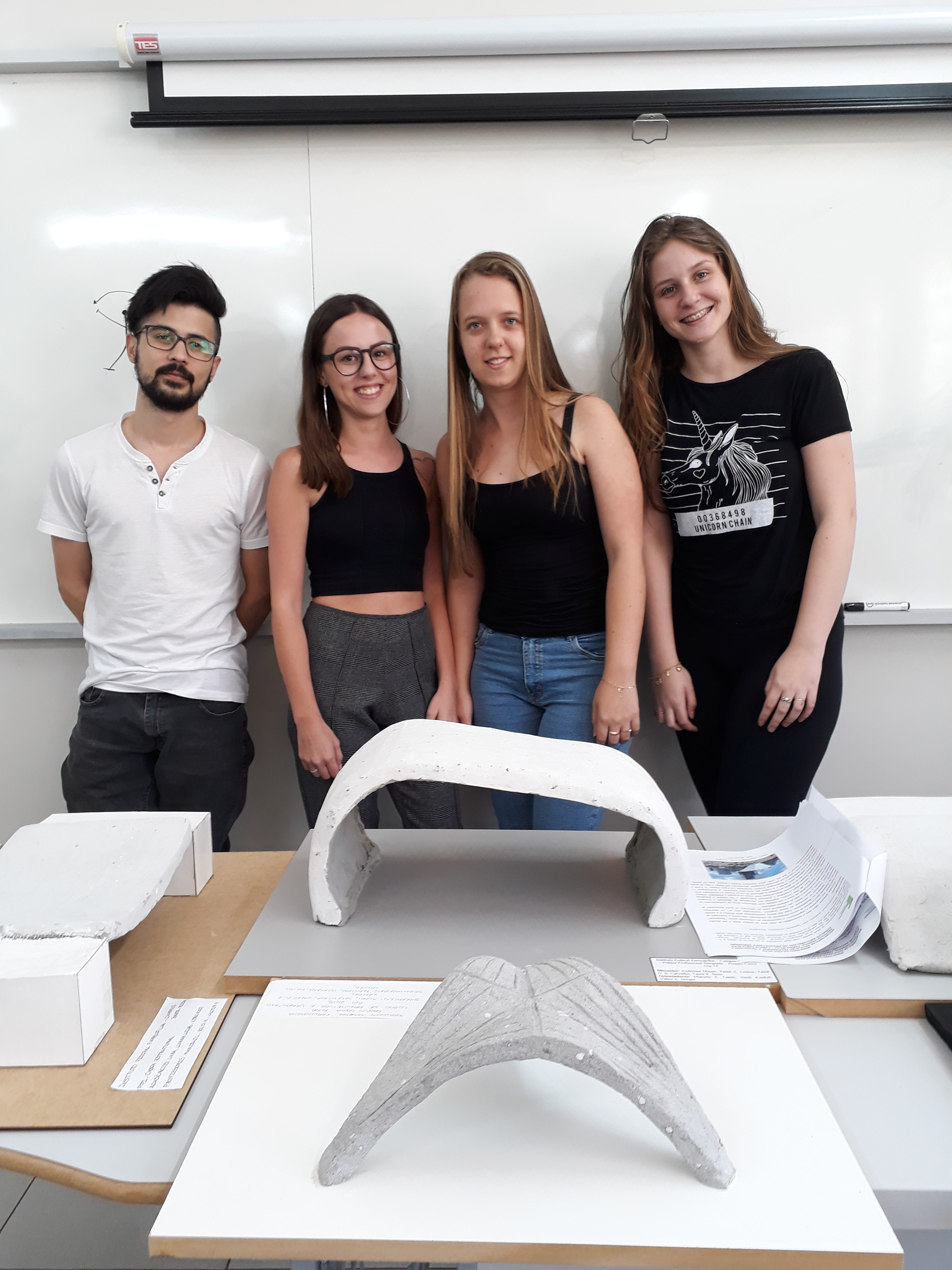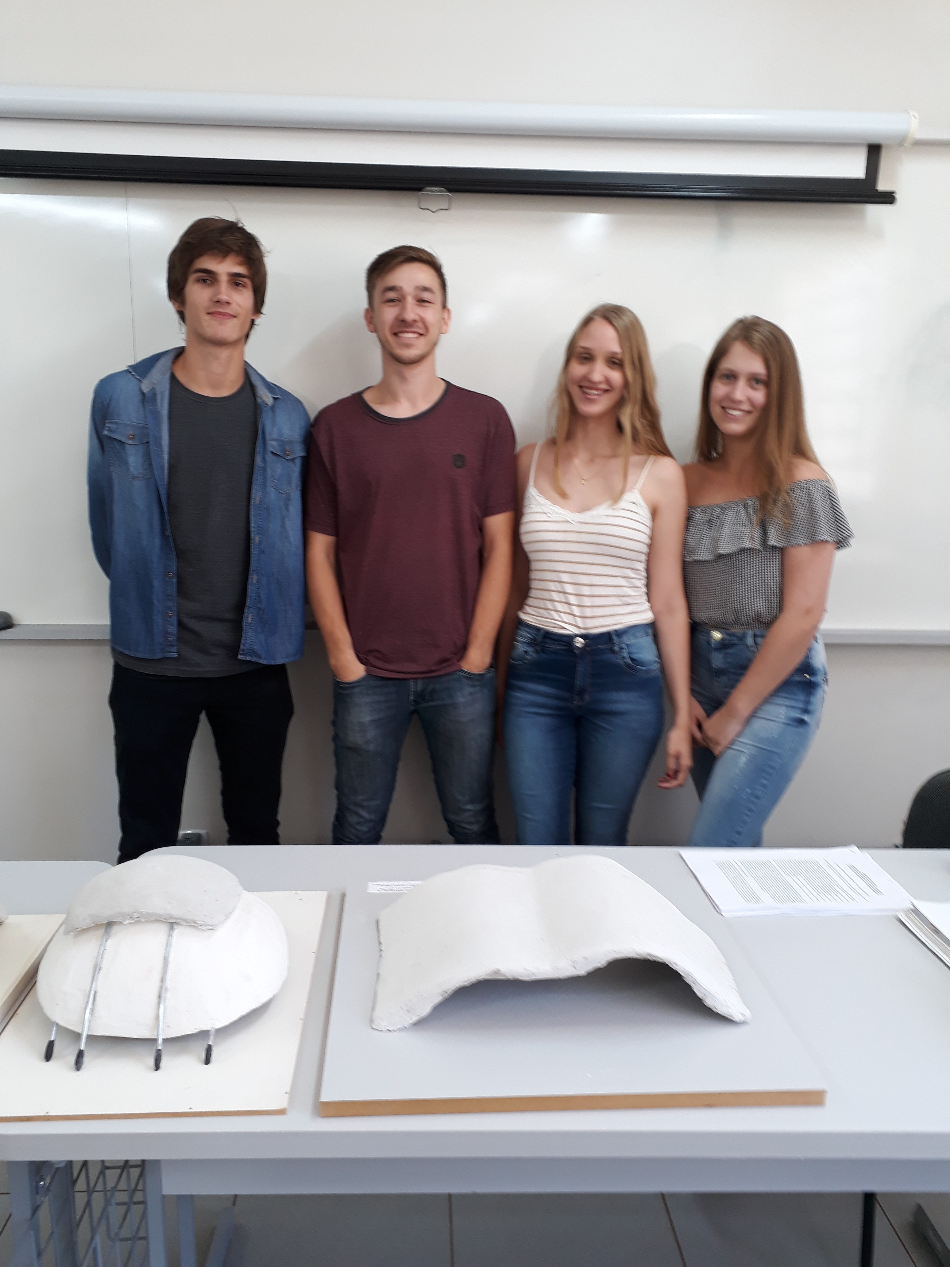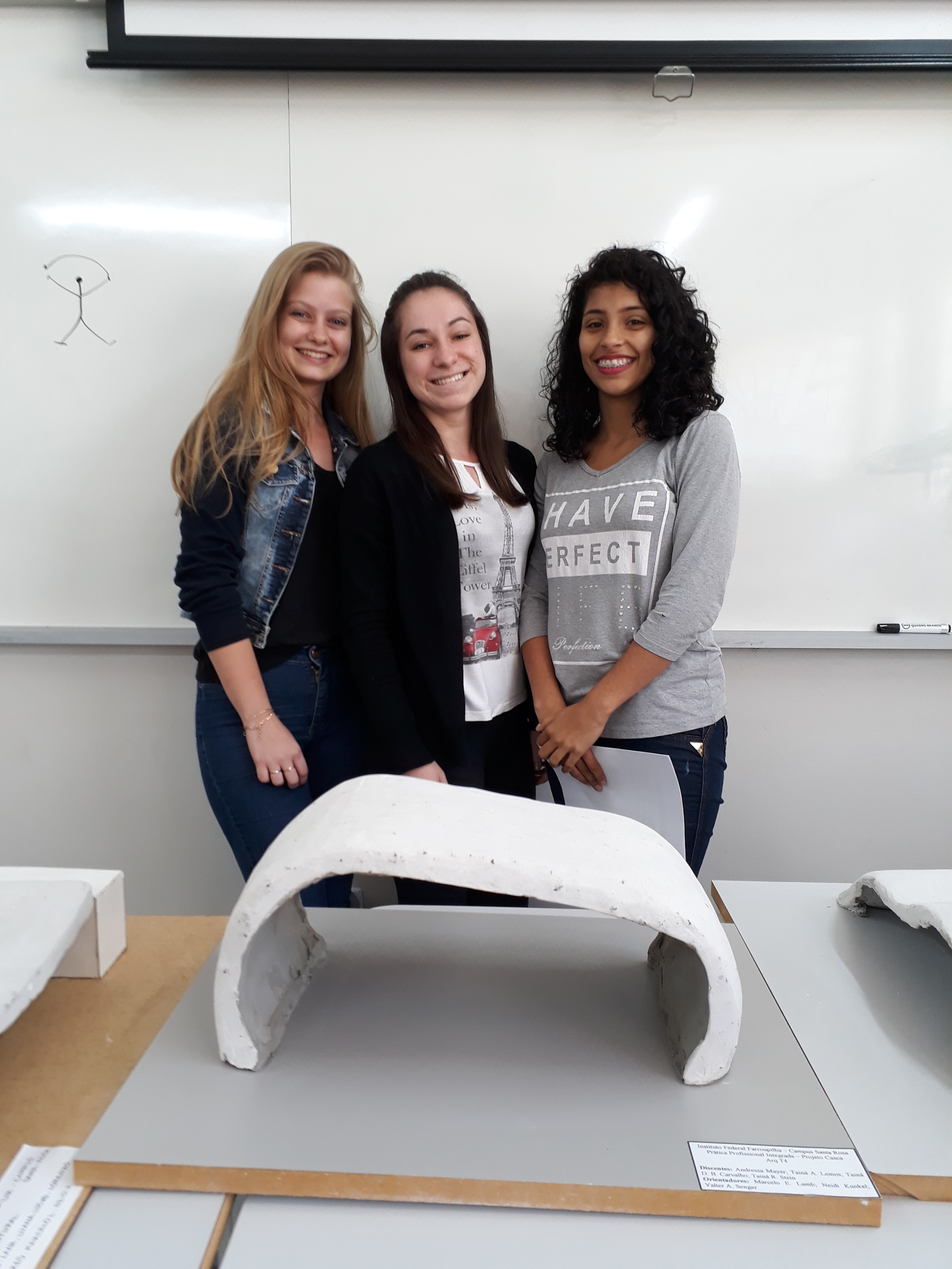 Na tarde desta segunda-feira (19), os alunos do curso de Arquitetura e Urbanismo, turma 4, apresentaram em aula, o resultado da atividade Prática Profissional Integrada (PPI), resultante de um estudo de uma estrutura em Casca, envolvendo as disciplinas de Sistemas Estruturais I, ministrada pela professora Neidi Kunkel, Materiais e Técnicas Construtivas II, pelo professor Valter A. Senger e Metodologia Científica, pelo professor Marcelo Eder Lamb.