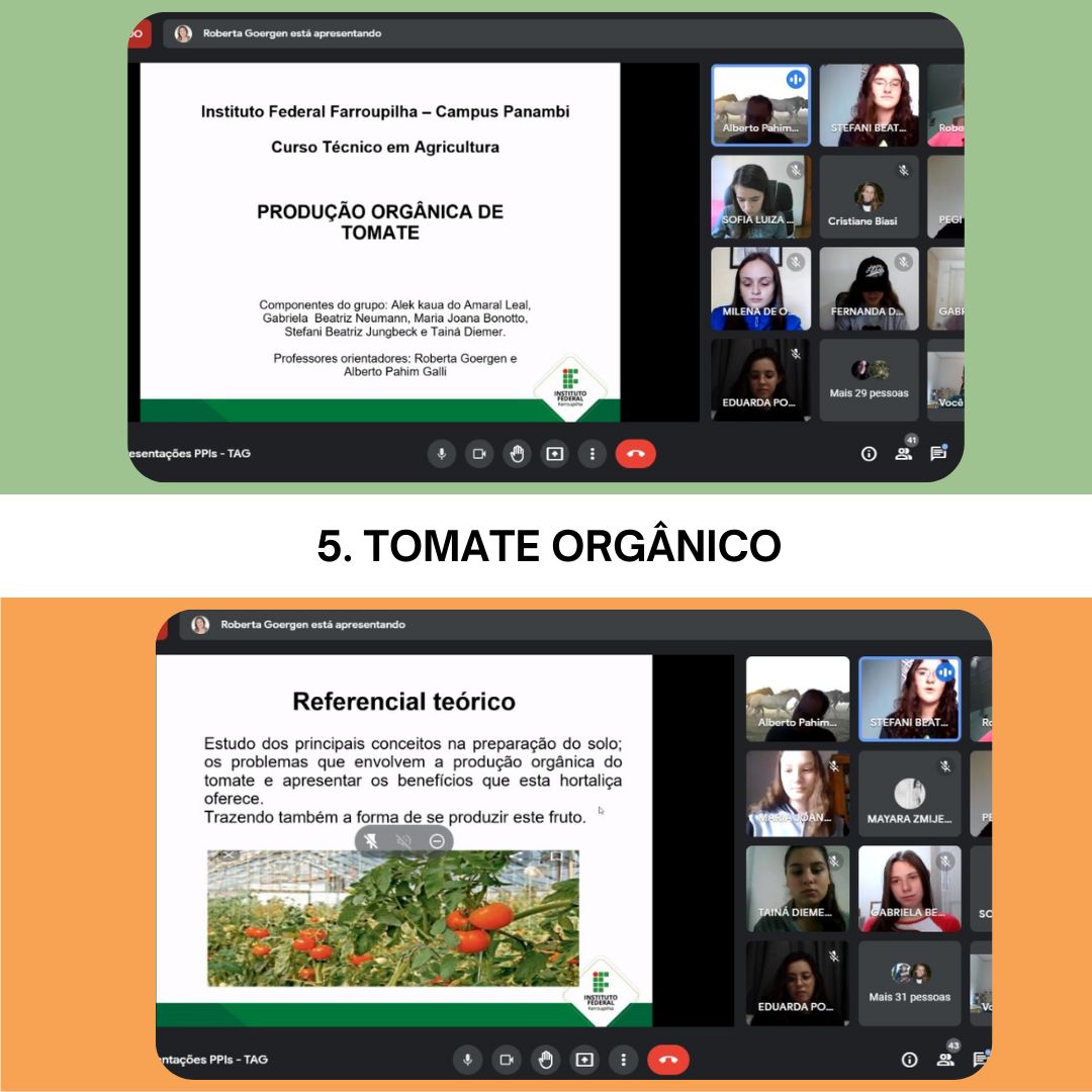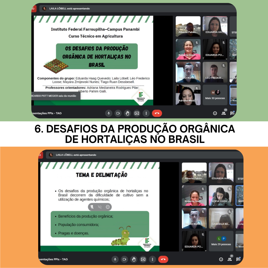 A turma do Curso Técnico em Agricultura do IFFar – Campus Panambi realizou sua primeira Prática Profissional Integrada (PPI), que articula conhecimentos de diferentes áreas e disciplinas em um único trabalho. Organizados em 7 grupos, com 5 integrantes cada, os projetos abordaram assuntos relacionados à “Produção Orgânica”, tema central da PPI. Dentro dessa temática foi abordada a produção orgânica de frutas, hortaliças, sua relação com insetos (abelhas), a segurança alimentar e a preservação do meio ambiente.