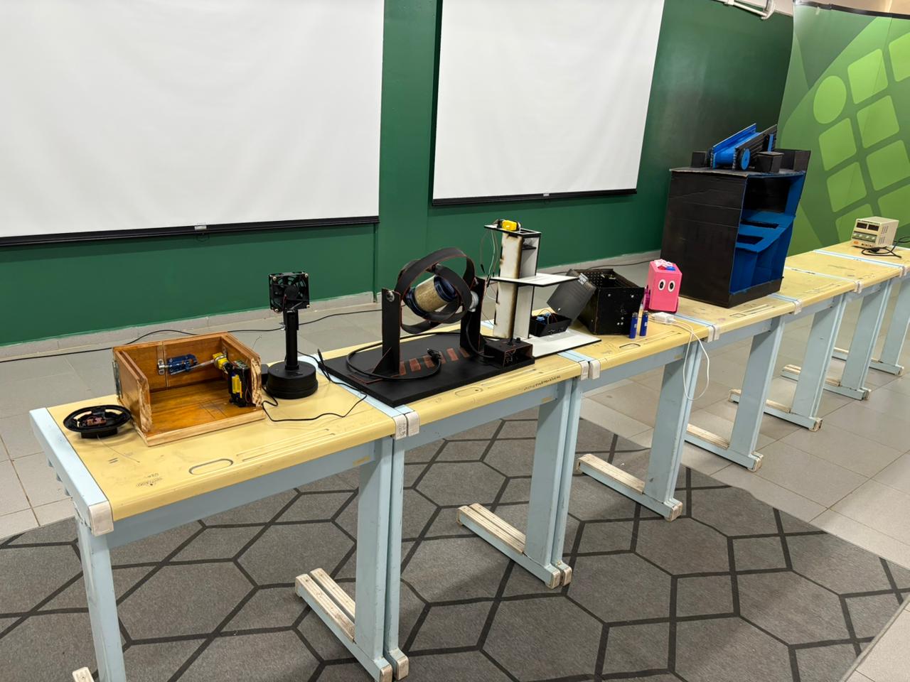 Durante as apresentações, foram expostos trabalhos de diferentes temáticas e níveis de complexidade, como protótipos construídos com materiais reciclados, veículos seguidores de linha e veículos controlados via Bluetooth. Os projetos demonstraram a criatividade, a competência técnica e o protagonismo dos estudantes, que assumiram papel central em todas as etapas — desde a concepção das ideias até a execução e apresentação final.