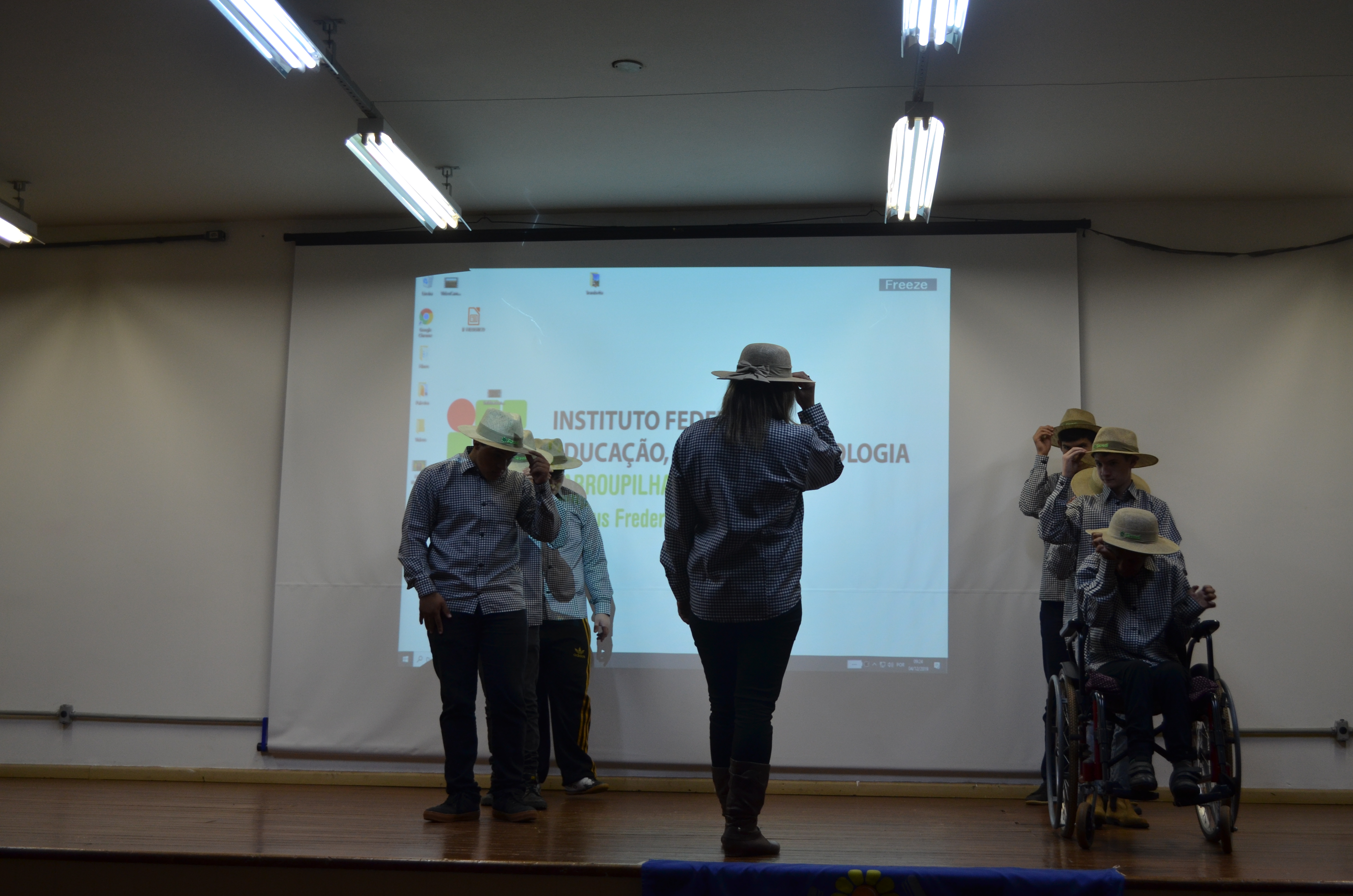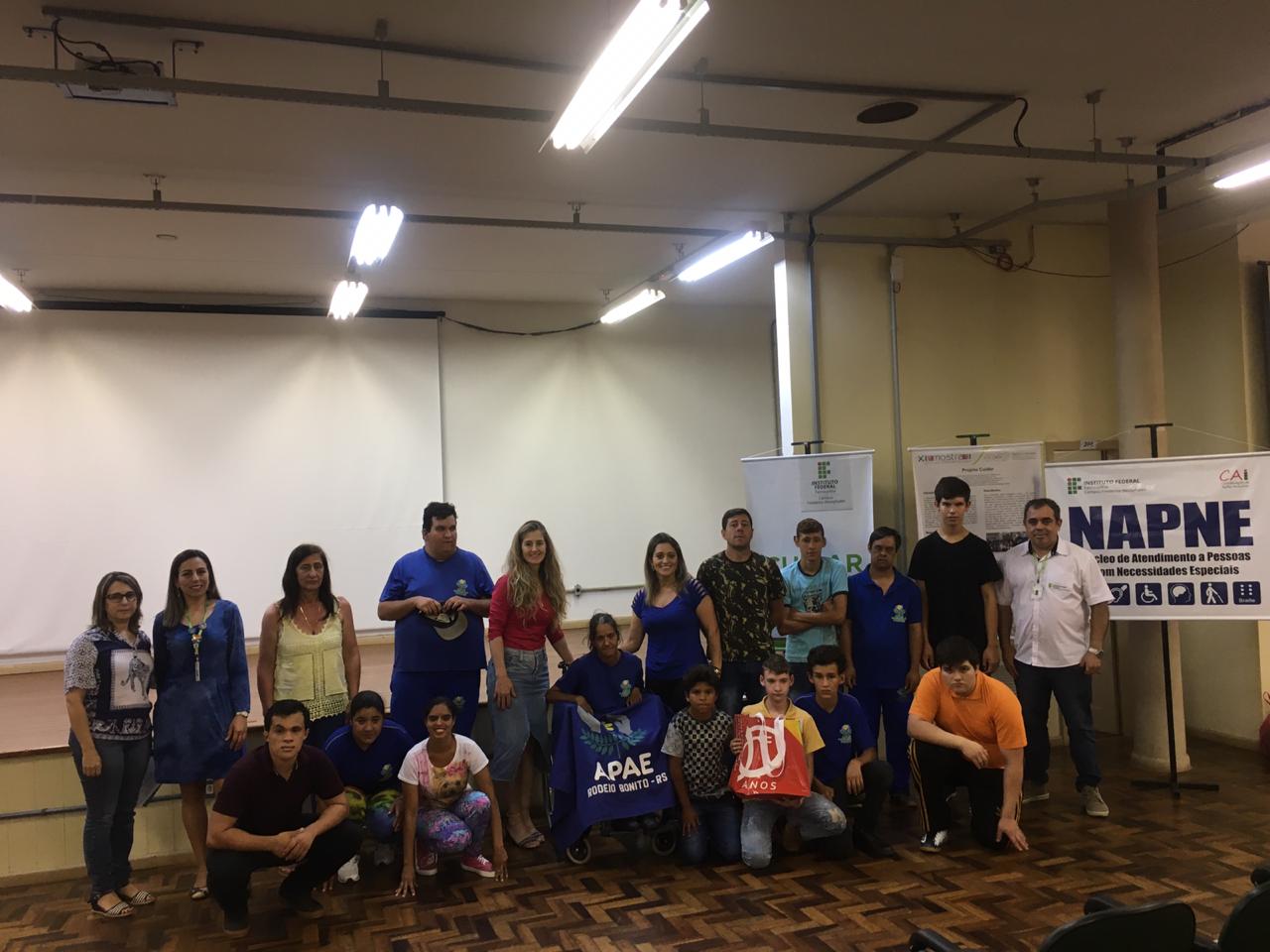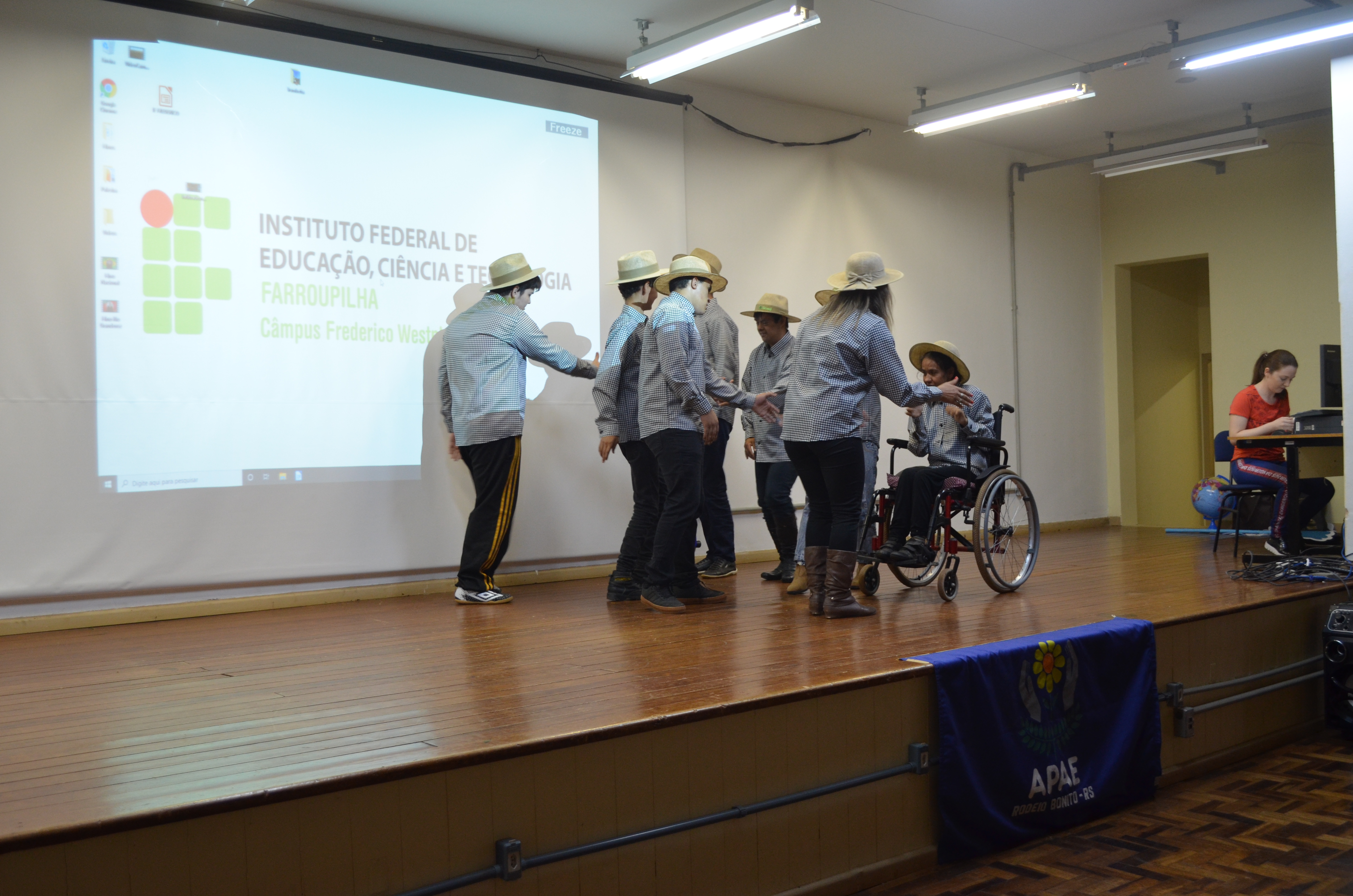 Assim, com o intuito de integrar a data referida com o interesse da Associação de Pais e Amigos dos Excepcionais (APAE) de Rodeio Bonito em conhecer nosso Campus e, ao mesmo tempo, nos oferecer um momento de apresentação artística, foi proposta uma atividade no Salão Social na última quarta-feira, 04 de outubro, a qual toda a comunidade acadêmica do IFFar-FW esteve prestigiando.