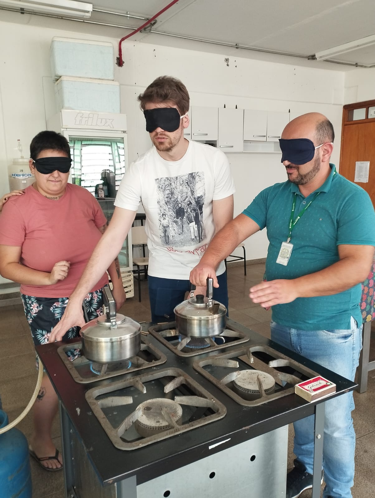 Os encontros abordaram práticas sobre orientação e mobilidade, atividades de vida diária e tecnologias assistivas para pessoas com deficiência visual. Ao se colocarem no lugar do outro, os participantes perceberam as dificuldades de um sujeito com deficiência visual, podendo estar mais atentos às necessidades dessas pessoas.