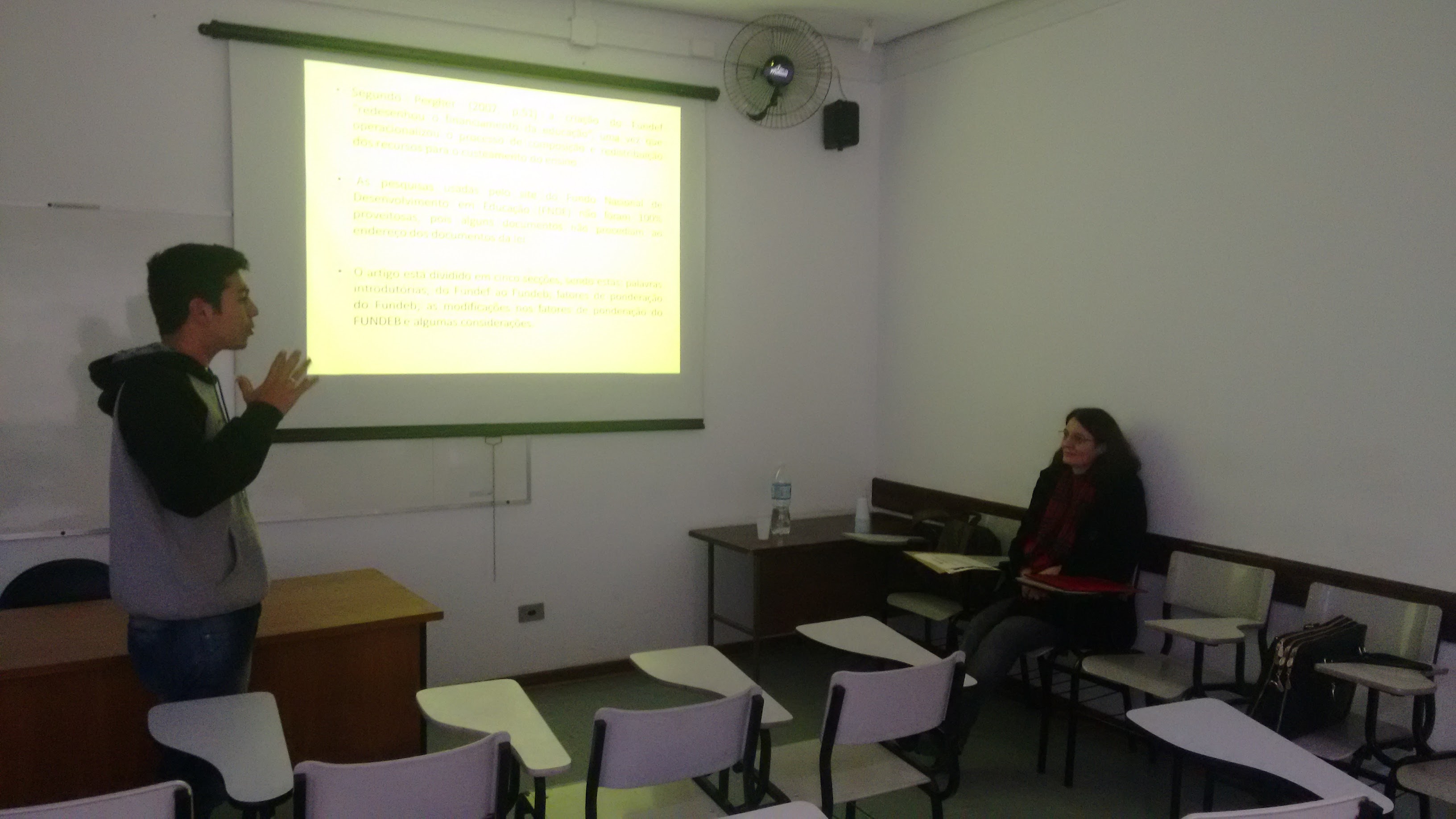 A Professora Gabriela apresentou o trabalho “Impacto dos insumos na composição do gasto aluno de uma escola do campo”, que foi fruto de seu Trabalho de Conclusão de Curso (TCC) no Curso de especialização em Gestão Escolar do campus Alegrete. Ambos os trabalhos instigaram vários questionamentos e o interesse do público no evento.