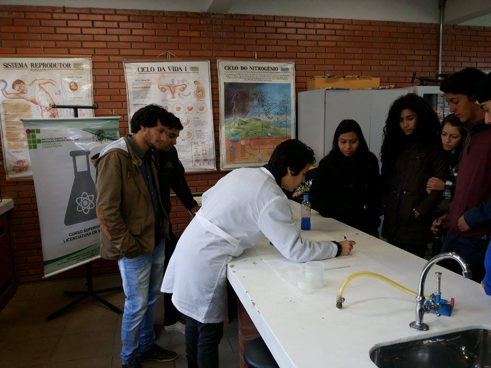 A equipe IF Farroupilha Campus Alegrete também contou com a presença dos acadêmicos dos cursos de Licenciatura em Química e Matemática. Eles levaram as atividades práticas desenvolvidas em sala para que os alunos do 3º ano, futuros acadêmicos, possam visualizar o que faz cada curso, podendo ter uma escolha mais certa de qual curso escolher após o término da escola. Participaram também dessas atividades o Professor Maurício Lutz e a Técnica em Laboratório de Química, Maria Laura Lordello. Junto aos alunos das Licenciaturas, estiveram os acadêmicos do Curso Superior de Tecnologia em Agroindústria que realizaram demonstrações com equipamentos utilizados na área de alimentos e dicas de alimentação. Os estudantes vinculados ao PIBID do Curso de Licenciatura em Biologia palestraram e mostraram ações de combate ao mosquito Aedes aegypti, atividade essa que já vem sendo desenvolvida em outras escolas.