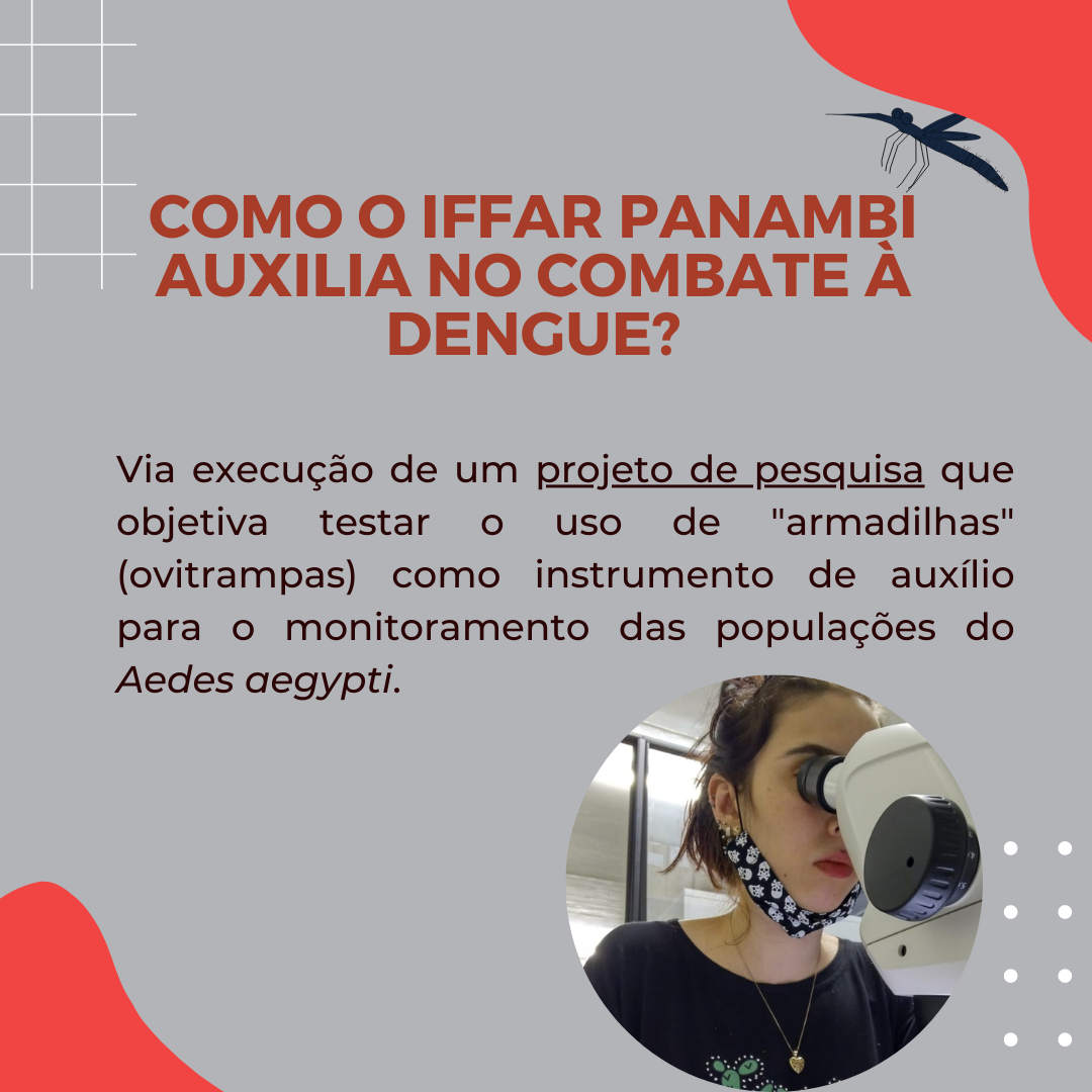 Pesquisadores do IFFar - Campus Panambi, em parceria com a 17º Coordenadoria Regional de Saúde do RS, Secretaria Municipal de Saúde de Ijuí e Secretaria Municipal de Saúde de Panambi estão conduzindo um projeto de pesquisa para testar o uso de ovitrampas como instrumento de auxílio para o monitoramento das populações do Aedes aegypti.