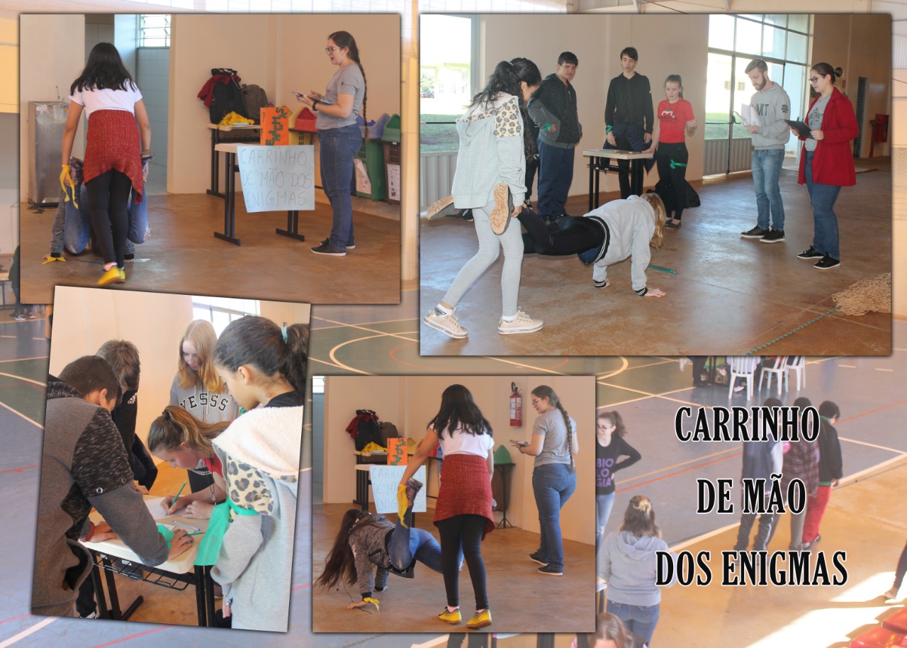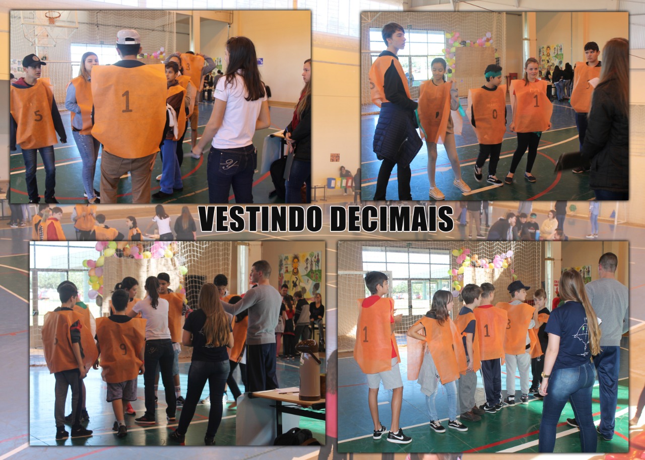 As atividades foram realizadas no Ginásio do campus e integraram as disciplinas de Matemática e Biologia. “Foram organizadas 10 estações, sendo 3 específicas da Biologia, 3 da Matemática e 4 contemplando conhecimentos de Biologia e Matemática”, explica a professora de Biologia, Michele Brodt. “Organizamos equipes mistas por cores, propiciando a integração de diferentes turmas e escolas nas dinâmicas”.