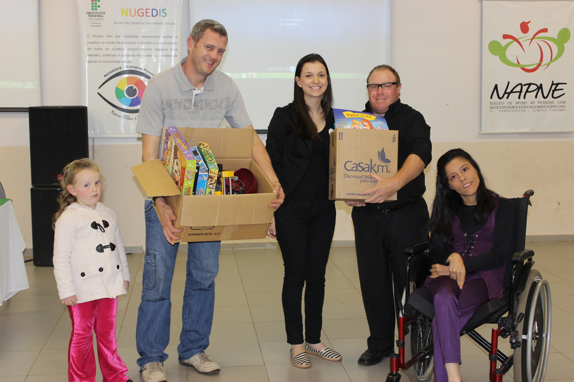 Os alunos da APAE Panambi, André Fenske e Fernanda Chaves, fizeram uma emocionante apresentação cultural da última noite do evento. A apresentação teve coordenação da professora Ligia Vincensi de Miranda. Na ocasião também foram entregues aos representantes da APAE alguns jogos, brinquedos e livros arrecadados na campanha alusiva ao Dia Nacional da Luta da Pessoa com Deficiência, promovida pelo IFFar.