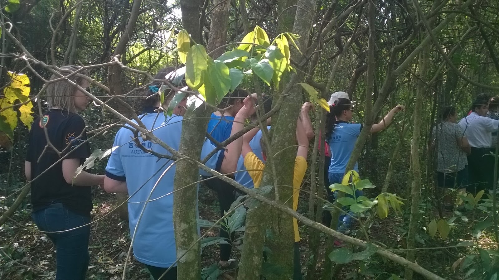 Foto: Deficientes visuais realizam trilha adaptada com cordas.