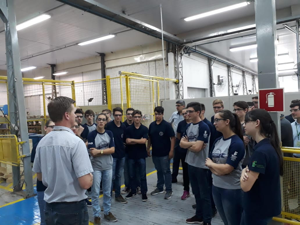 Ainda, o alunos tiveram a oportunidade de conhecer a empresa e acompanhar de perto as etapas de produção e os respectivos processos de fabricação envolvidos, passando pelas etapas de planejamento, projeto e operação. Desse modo, a visita técnica possibilitou aos participantes uma visão completa dos processos internos, enriquecidos pelas explicações técnicas e experiências práticas dos funcionários que acompanharam o grupo. Foram visitadas as fábricas 2 e 3, responsáveis pela parte mecânica e de automação, respectivamente.