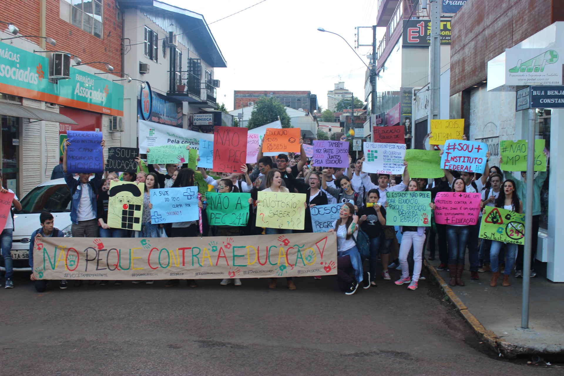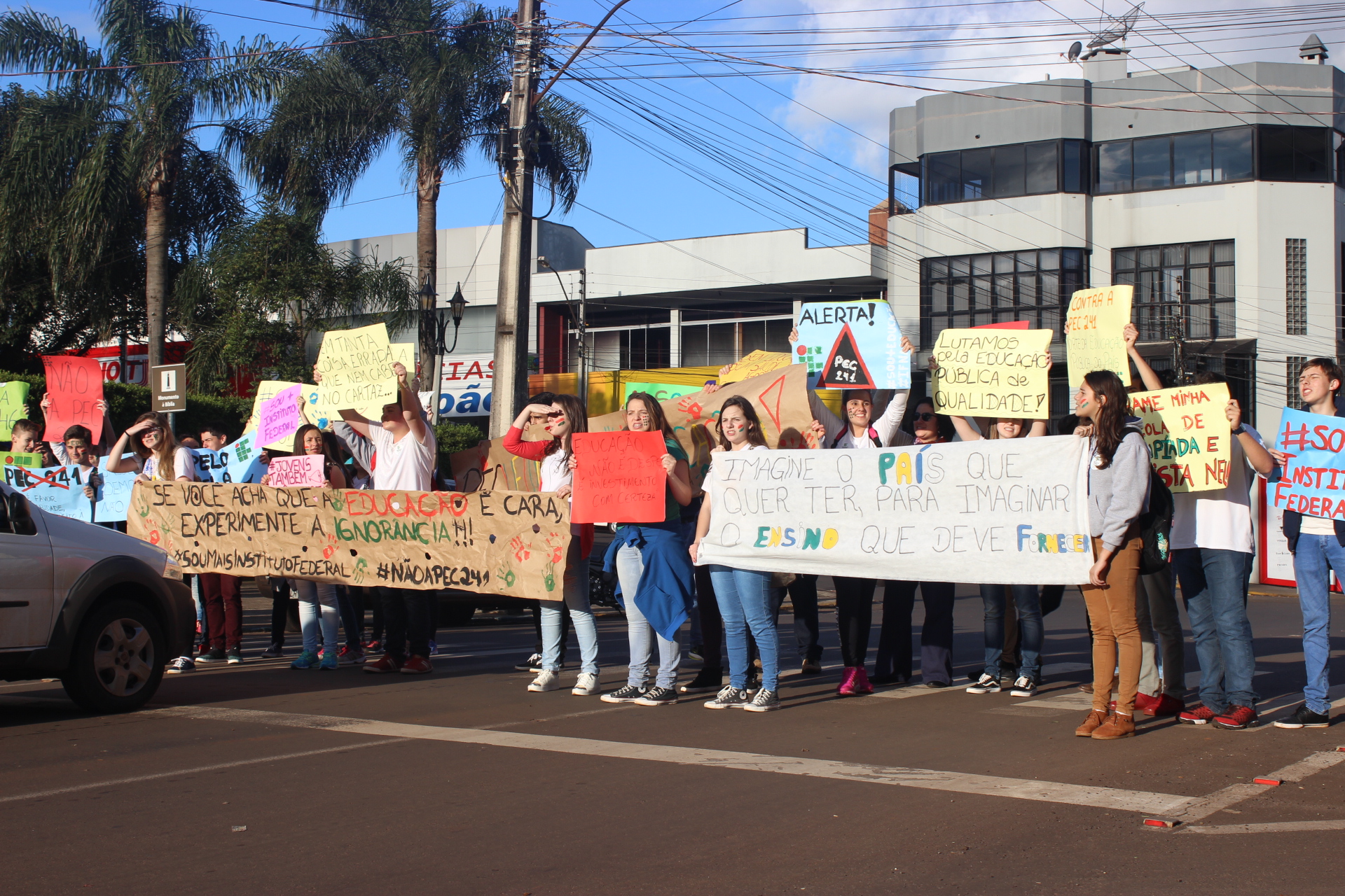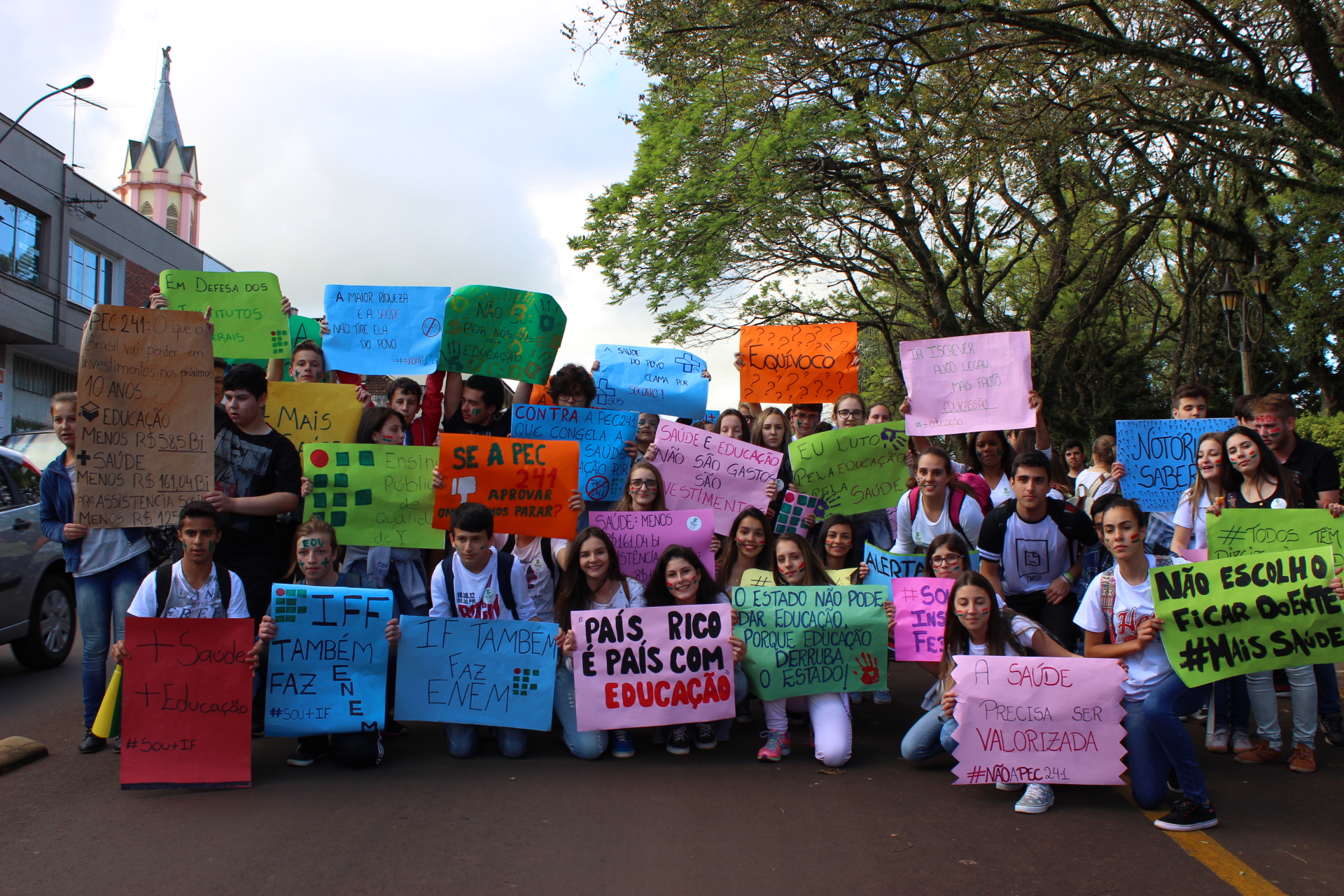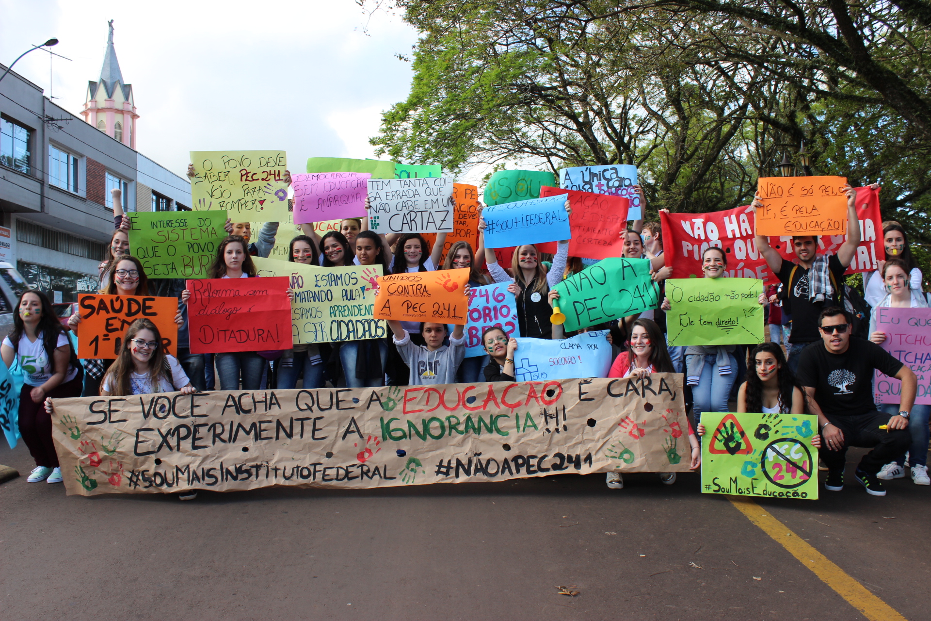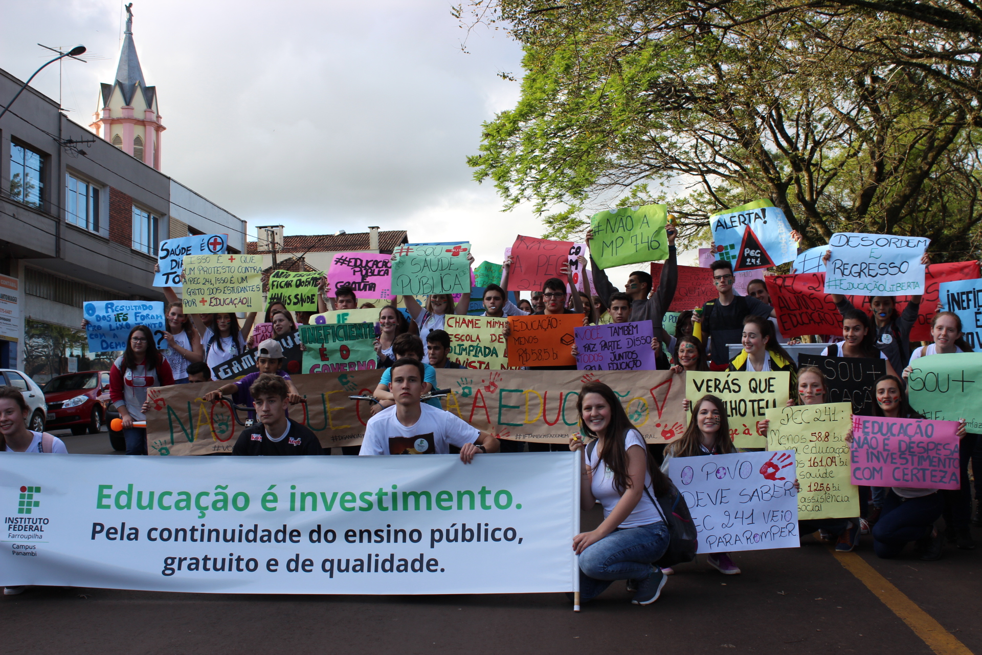 Nas últimas semanas alunos de todos os campi do Instituto Federal Farroupilha tem se mobilizado, de diversas formas, contra as medidas impostas pela PEC 241, pelo PLP 257 e pela MP 746, entre outras. Em Panambi os alunos realizaram uma caminhada, no dia 6/10, em prol da continuidade da educação pública, gratuita e de qualidade, dirigindo-se do Campus até a Praça Central. Já no dia 10/10 ocorreu a entrega de uma Carta Aberta, redigida pelos estudantes, ao Presidente da Câmara Municipal de Vereadores.