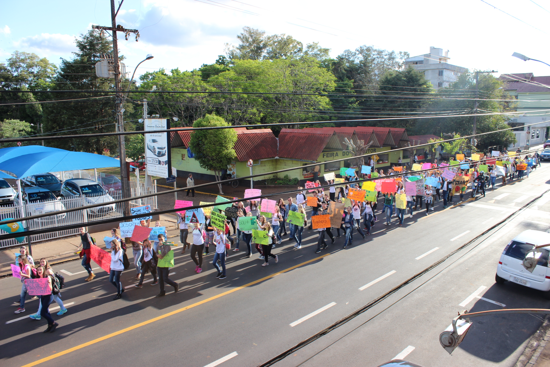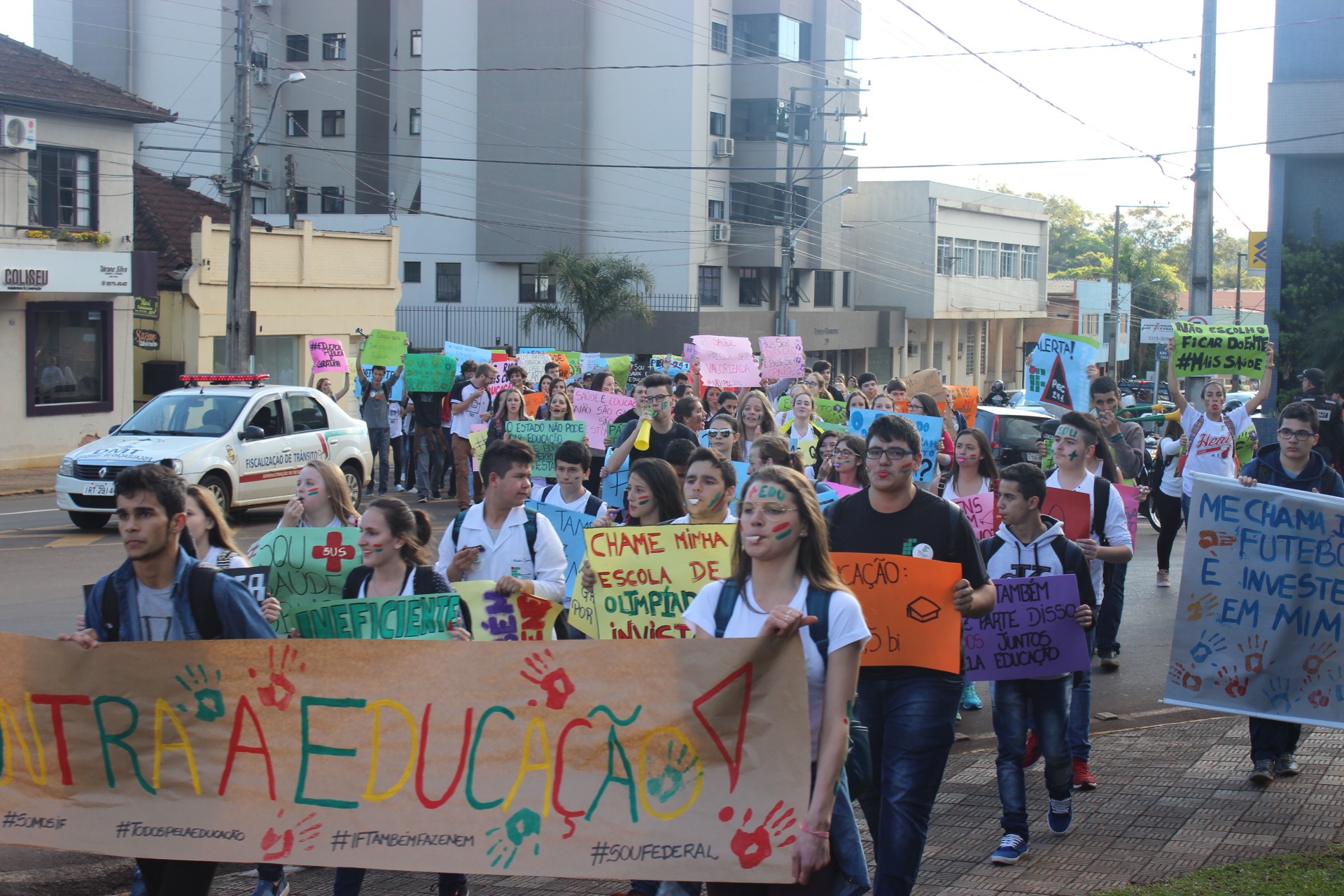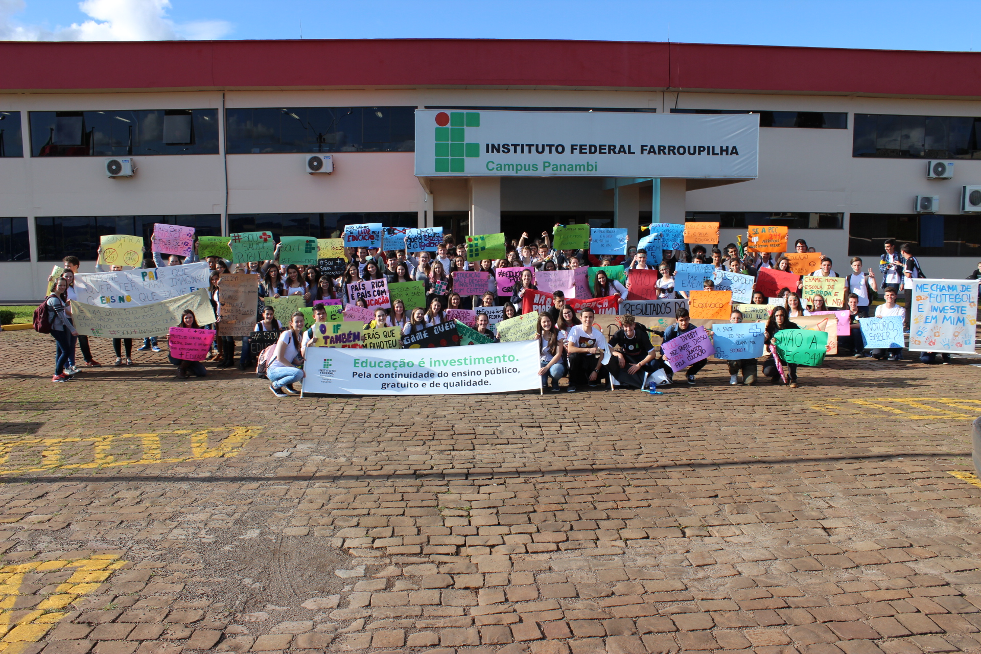 No dia 06/10, quinta-feira, mais de 250 alunos do Instituto Federal Farroupilha – Campus Panambi realizaram uma mobilização em prol da continuidade da educação pública, gratuita e de qualidade, dirigindo-se do Campus até a Praça Central.