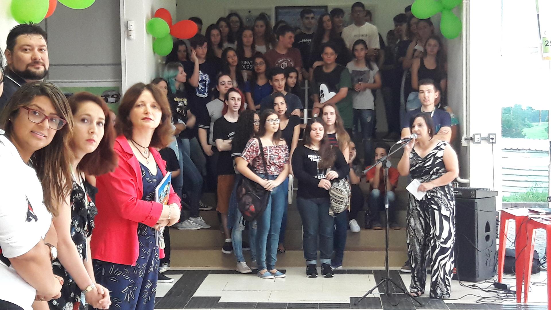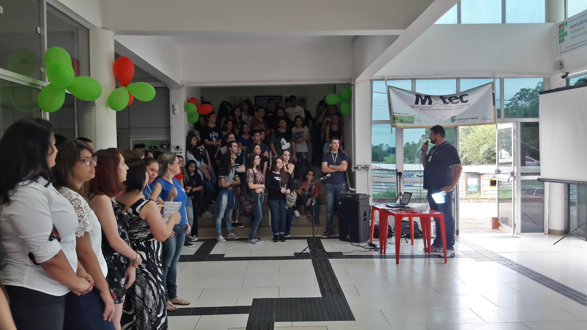 Inicialmente os alunos e servidores assistiram ao vídeo de boas vindas à comunidade acadêmica da Reitora do IF Farroupilha, Carla Comerlato Jardim. A Diretora Geral, Professora Rosane Rodrigues Pagno conduziu, juntamente com os demais Diretores, Docentes e Técnicos Administrativos em Educação, esta manhã contagiante de volta às aulas no Campus. Por fim, os alunos foram recepcionados também pela equipe do Grêmio Estudantil - Professor Cesar Eduardo Stevens Kroetz.