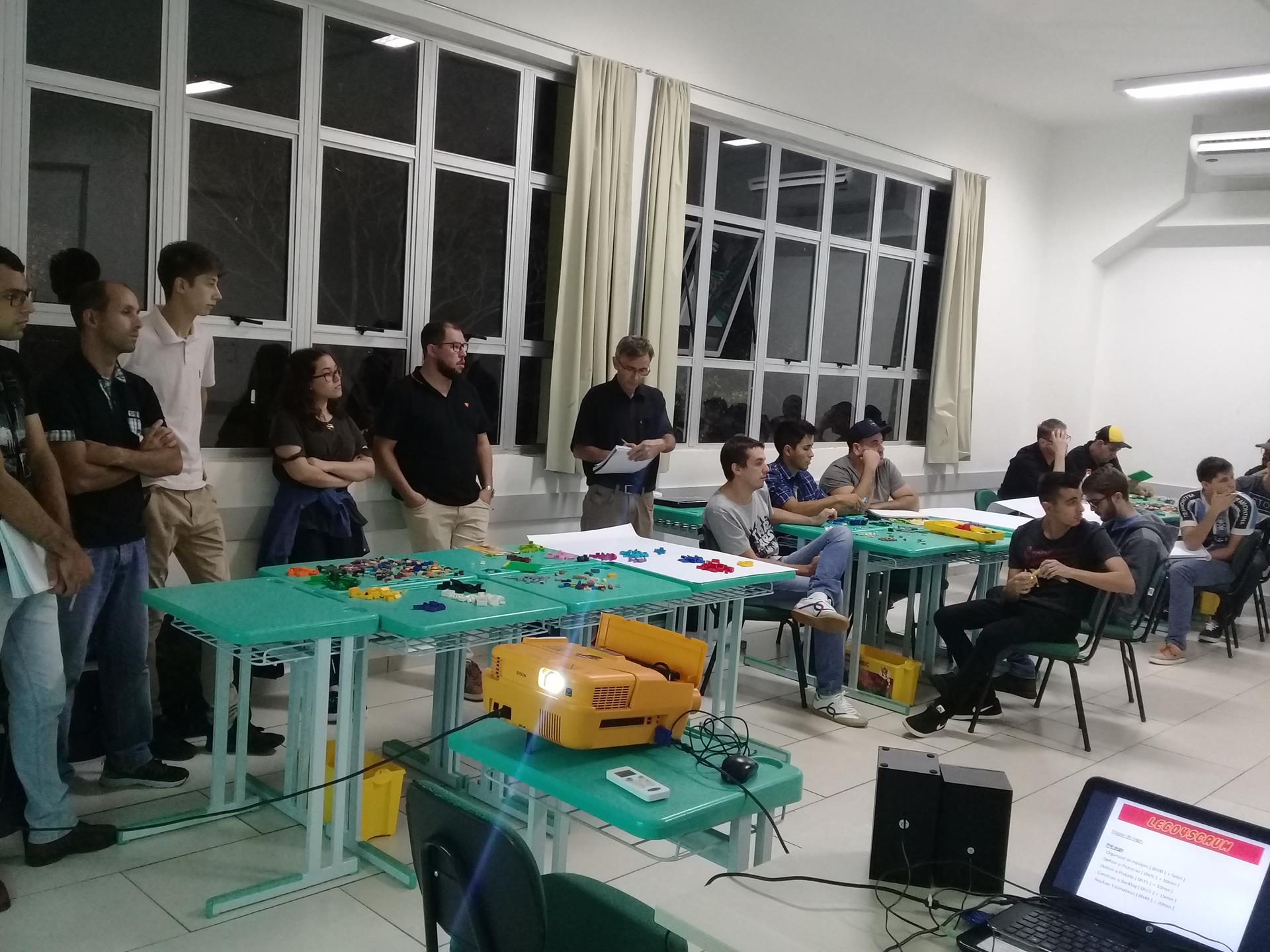 No dia 04 de abril, os alunos do 3º semestre do Curso Superior de Tecnologia em Sistemas para Internet, do Instituto Federal Farroupilha, Campus Santo Ângelo, participaram de uma atividade lúdica diferente. Para ensinar metodologias ágeis para gerenciamento de projetos, assunto tratado na disciplina Engenharia de Software 1, a professora Karlise Soares e o aluno da primeira turma do curso - Anderson Daniel Stochero aplicaram o jogo Lego4Scrum, que utiliza peças montáveis de Lego como ferramenta para a compreensão dos conceitos do framework Scrum.