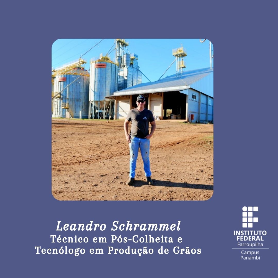 No #OrgulhoIFFar de hoje trazemos a trajetória do Leandro Schrammel, egresso dos cursos Técnico em Pós-Colheita (2017) e Tecnólogo em Produção de Grãos (2021).