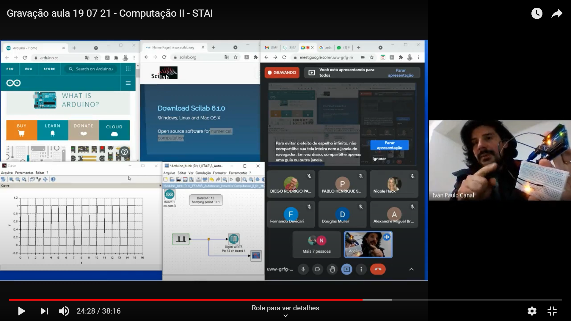 Reinventar o fazer docente para possibilitar a continuidade de um ensino de qualidade é mais uma das formas de atuação do IFFar – Campus Panambi. Seguem alguns registros da simulação, em tempo real, no Scilab Xcos integrado com a plataforma Arduino, durante aula de Computação II, do Professor Dr. Ivan Paulo Canal. Ensino digital qualificado é assim: conteúdos e materiais dinâmicos, personalizados e elaborados pelo professor da disciplina, de acordo com o conteúdo abordado durante as aulas remotas.