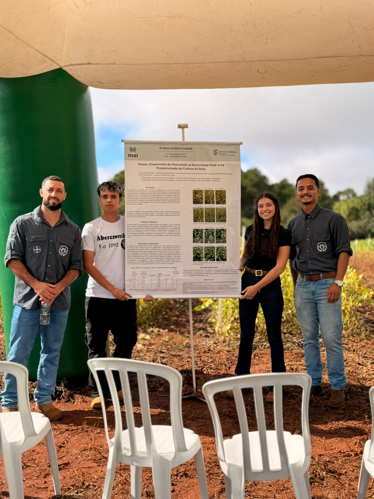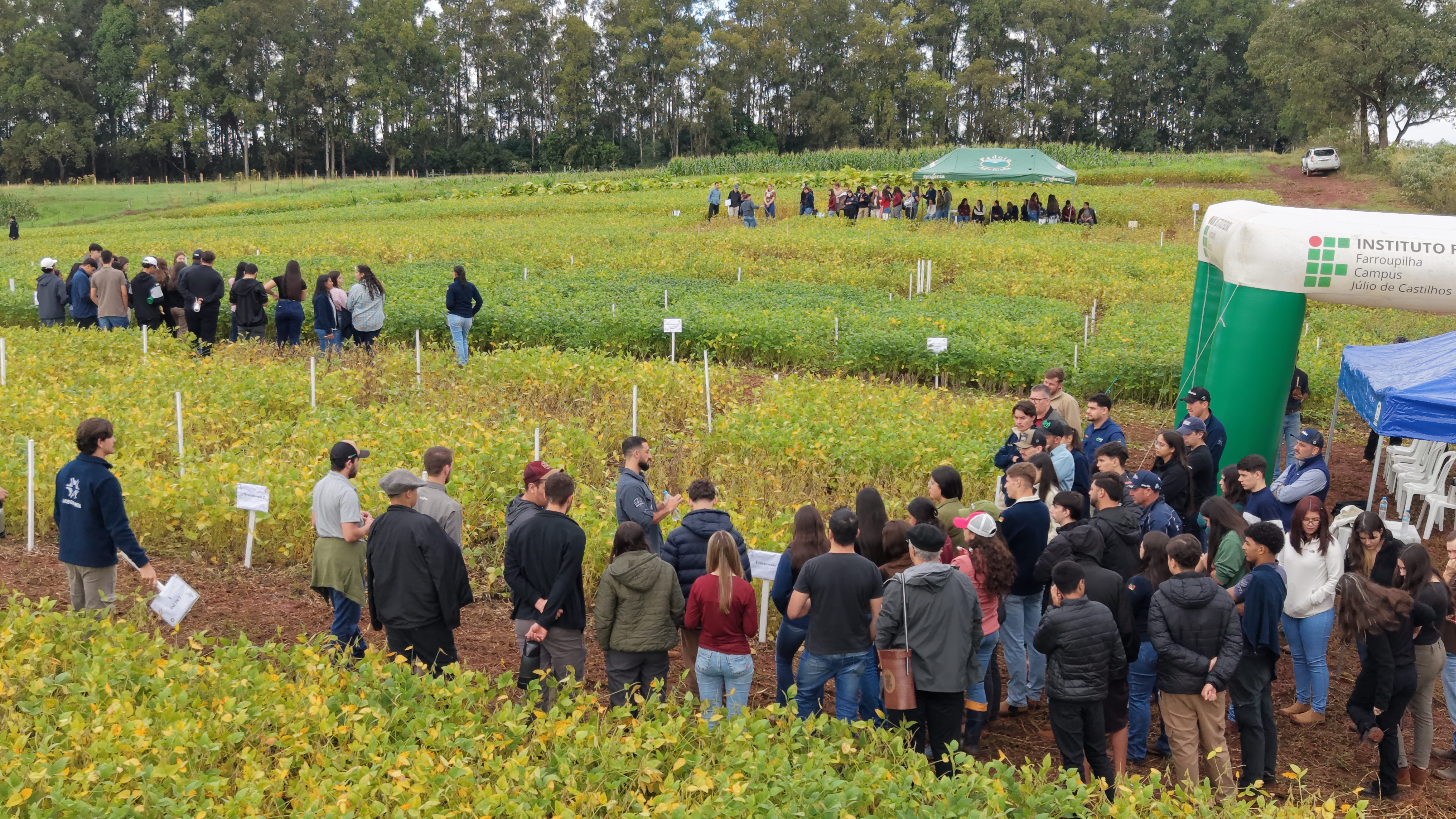 Ao todo, o Dia de Campo reuniu 287 participantes e contou com seis estações temáticas, nas quais os estudantes apresentaram conteúdos técnicos: Agricultura Regenerativa, Painel de Cultivares, Fungicidas Multissítio (pesquisa), Manejo de Plantas Daninhas, Manejo de Fungicidas e Fumicultura.
