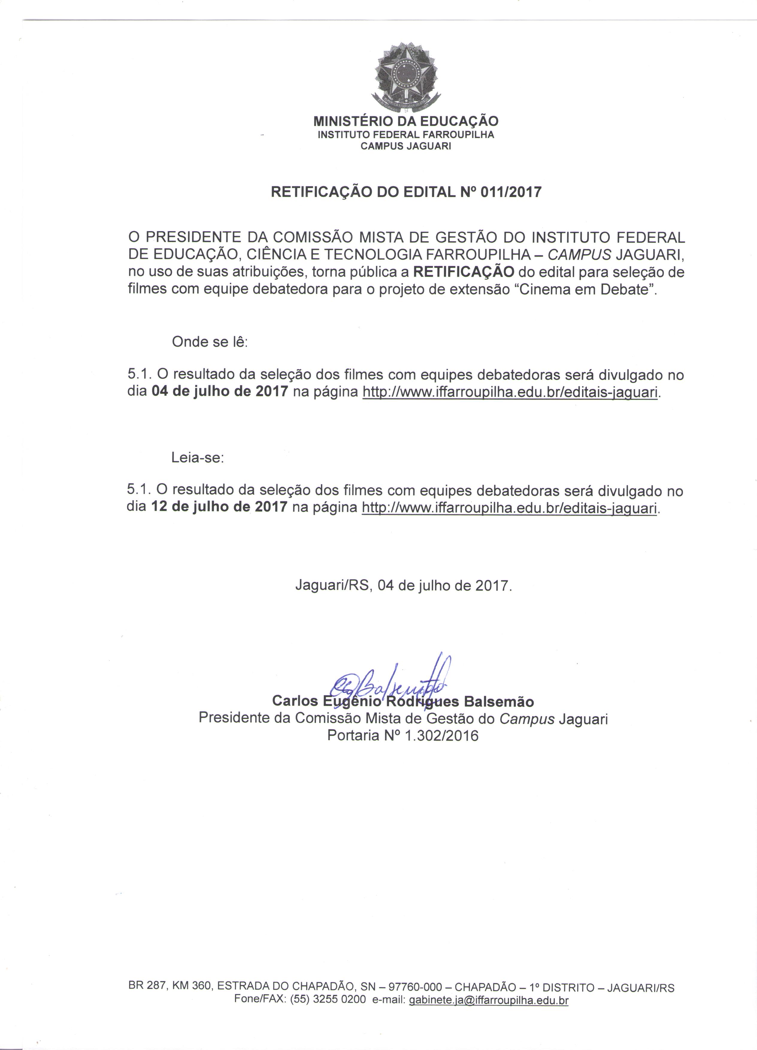 Edital 11/2017 - Seleção de filmes com equipe debatedora para o projeto de extensão "Cinema em debate"