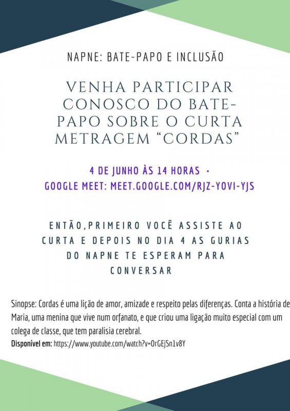 Bate-papo e inclusão: bate-papo sobre o curta metragem "Cordas" [NAPNE]