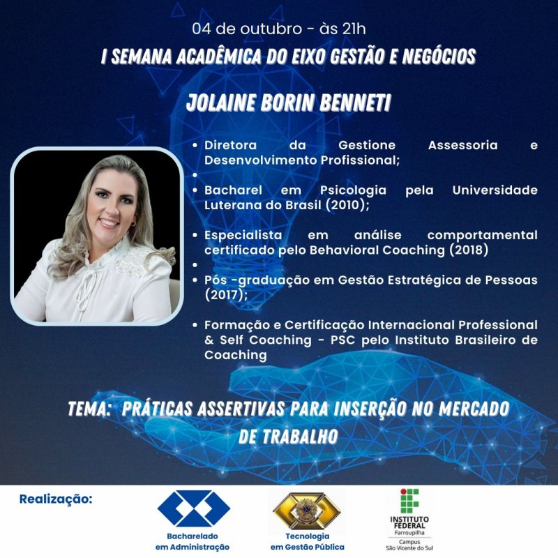 Página inicial > Eventos Institucionais > I Semana Acadêmica do Eixo de Gestão e Negócios - 2º dia