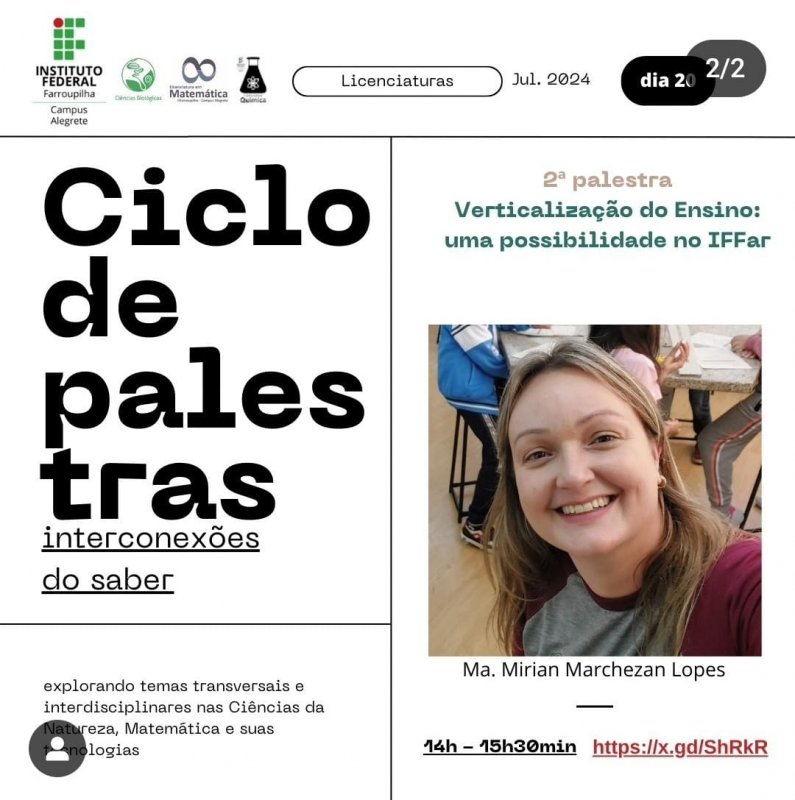Ciclo de Palestras - Ciências Biológicas Campus Alegrete - Prof.ª Mirian Lopes