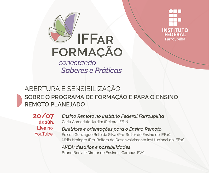 Inscrição:http://conferencias.iffarroupilha.edu.br/index.php/iffar-formacao/iffar-formacao2020