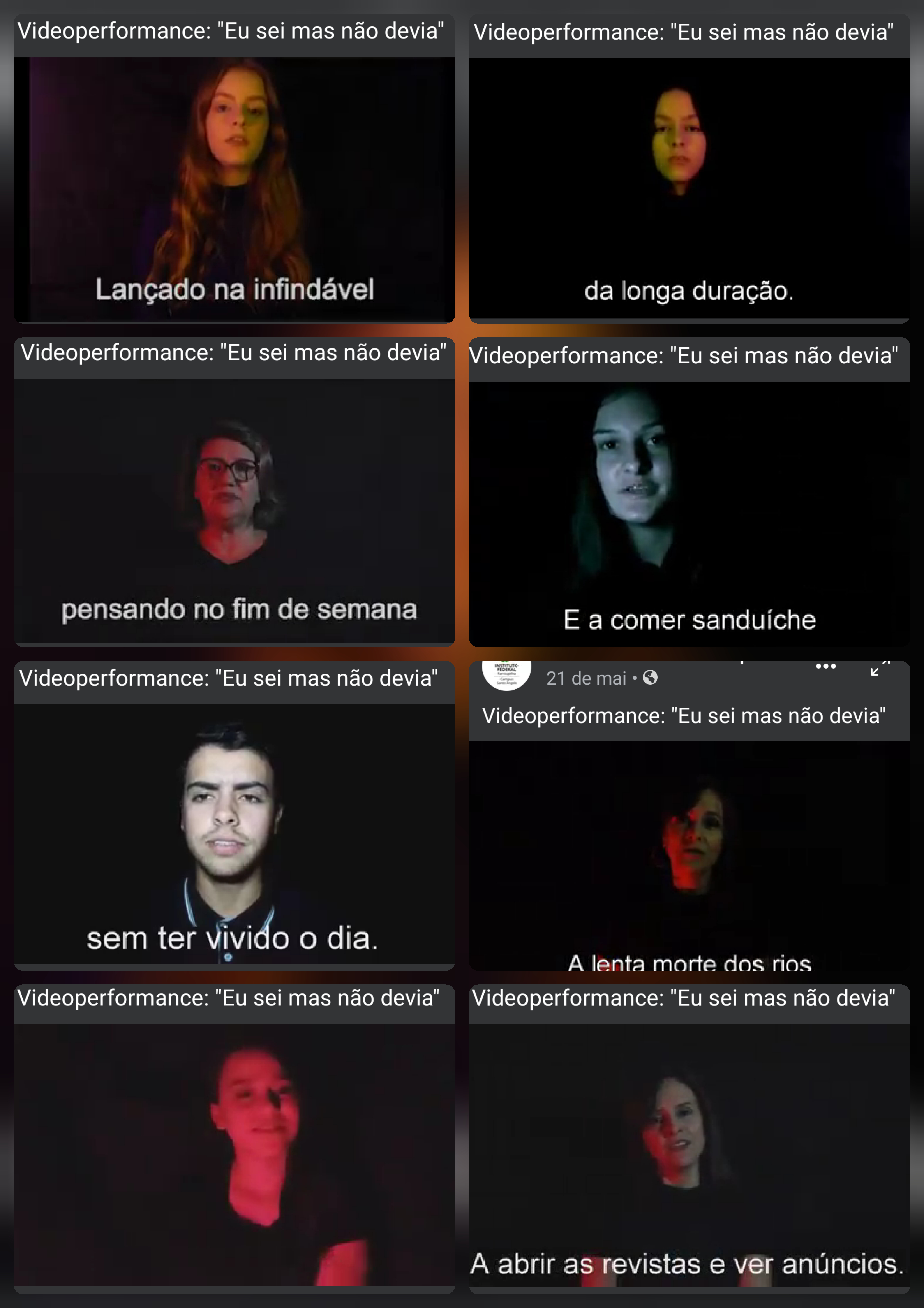 A videoperformance EU SEI, MAS NÃO DEVIA, foi criada pelo Grupo de Teatro constituído pelo Projeto de Ensino Artes Integradas: Oficina de Teatro e Projeto de Ensino Artes Integradas: Oficina de Artes Audiovisuais, durante o período de isolamento social. A inscrição no edital foi realizada através do Projeto de Extensão FACES, através da aluna bolsista Gabriely Fernandes.