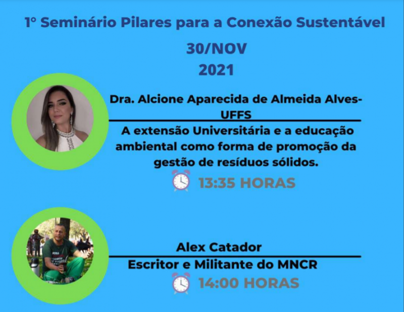 Nos dias 25, 29 e 30 de novembro, acontece o 1° Seminário Pilares para a Conexão Sustentável do Instituto Federal Farroupilha – Campus São Vicente do Sul. O evento é uma ação de um projeto de mesmo nome, aprovado no Programa IF Mais Empreendedor Nacional, que é direcionado às associações de recicladores/catadores dos municípios de Santiago, Jaguari, São Vicente do Sul, Rosário do Sul e São Francisco de Assis.