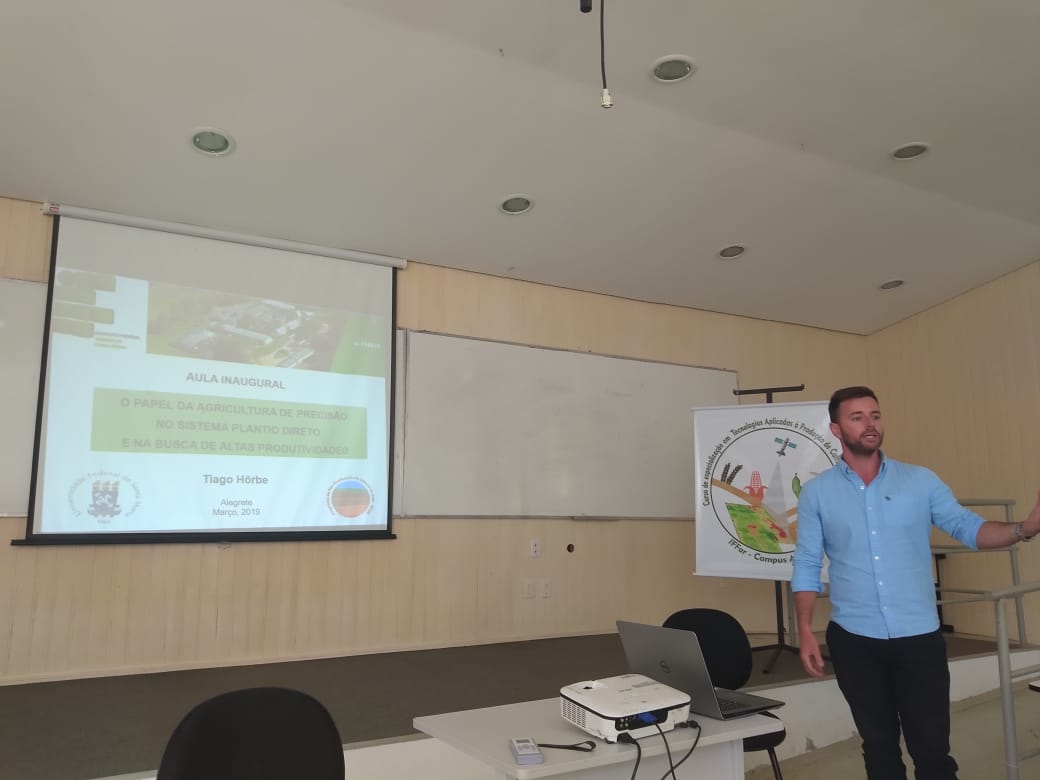 No dia 14 de março de 2019, iniciaram as atividades do novo Curso de Pós-Graduação do IFFar - Campus Alegrete. O curso de Pós-Graduação lato sensu "Tecnologias Aplicadas à Produção de Culturas de Lavoura" teve sua aula inaugural com duas importantes palestras: "Agricultura de Precisão" proferida pelo Prof. Dr. Tiago de Andrade Neves Horbe, Pós Doutorando da Universidade Federal de Santa Maria, e "Aviação Agrícola", proferida por Marcos Antônio Camargo, sócio-gerente da empresa Itagro Aviação Agrícola do município de Alegrete.