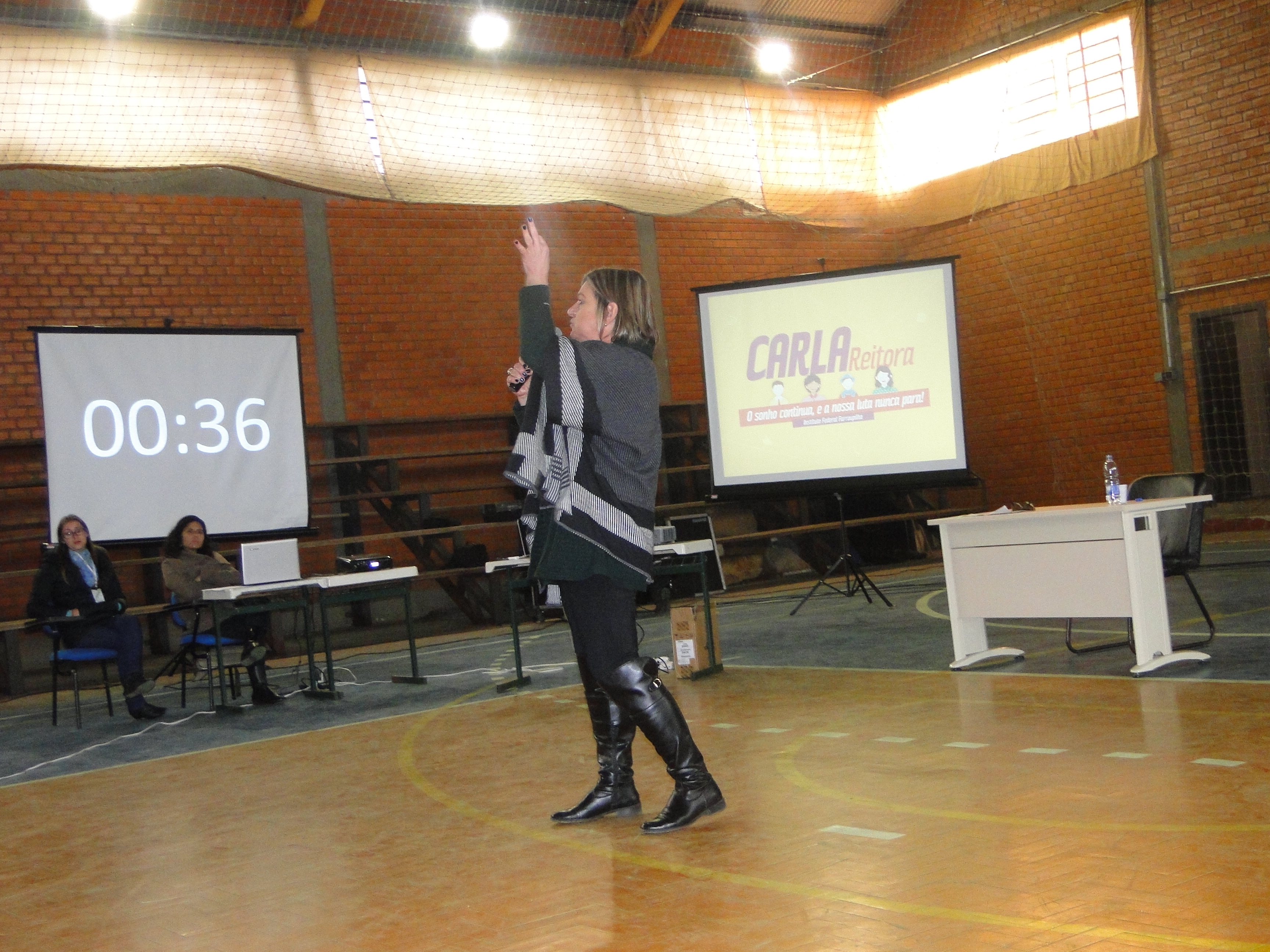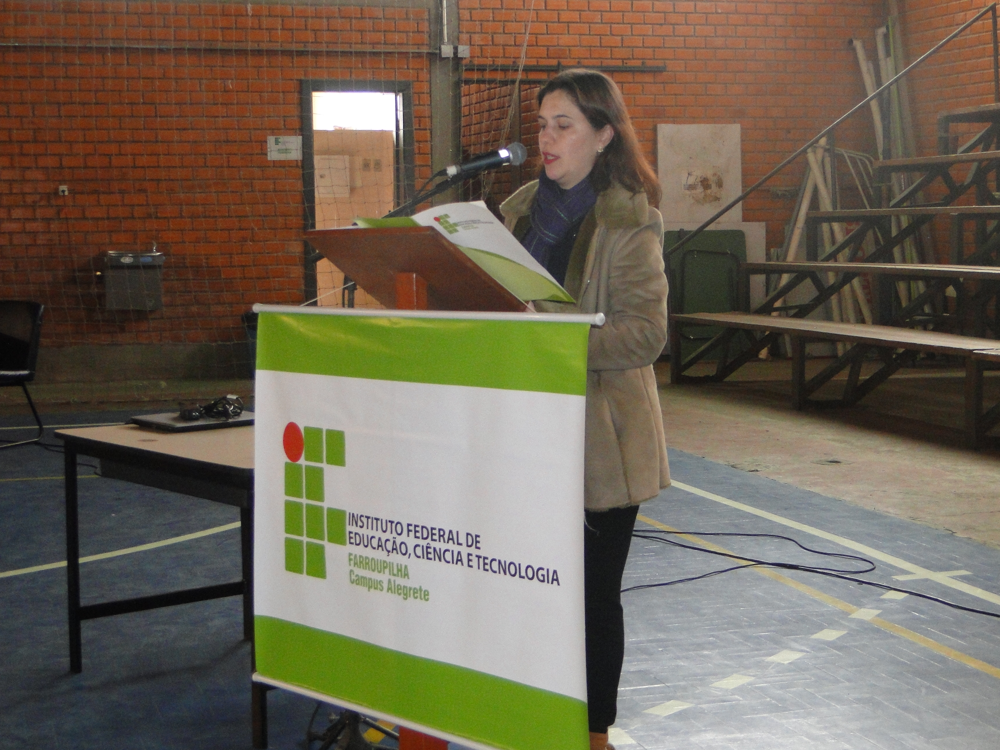Ontem, durante dois momentos – tarde e noite – no Ginásio de Esportes, a atual Reitora e candidata única à próxima gestão da Reitoria do IF Farroupilha (2016-2020), Carla Comerlato Jardim, expôs seu plano de ações aos alunos e servidores do Campus Alegrete.