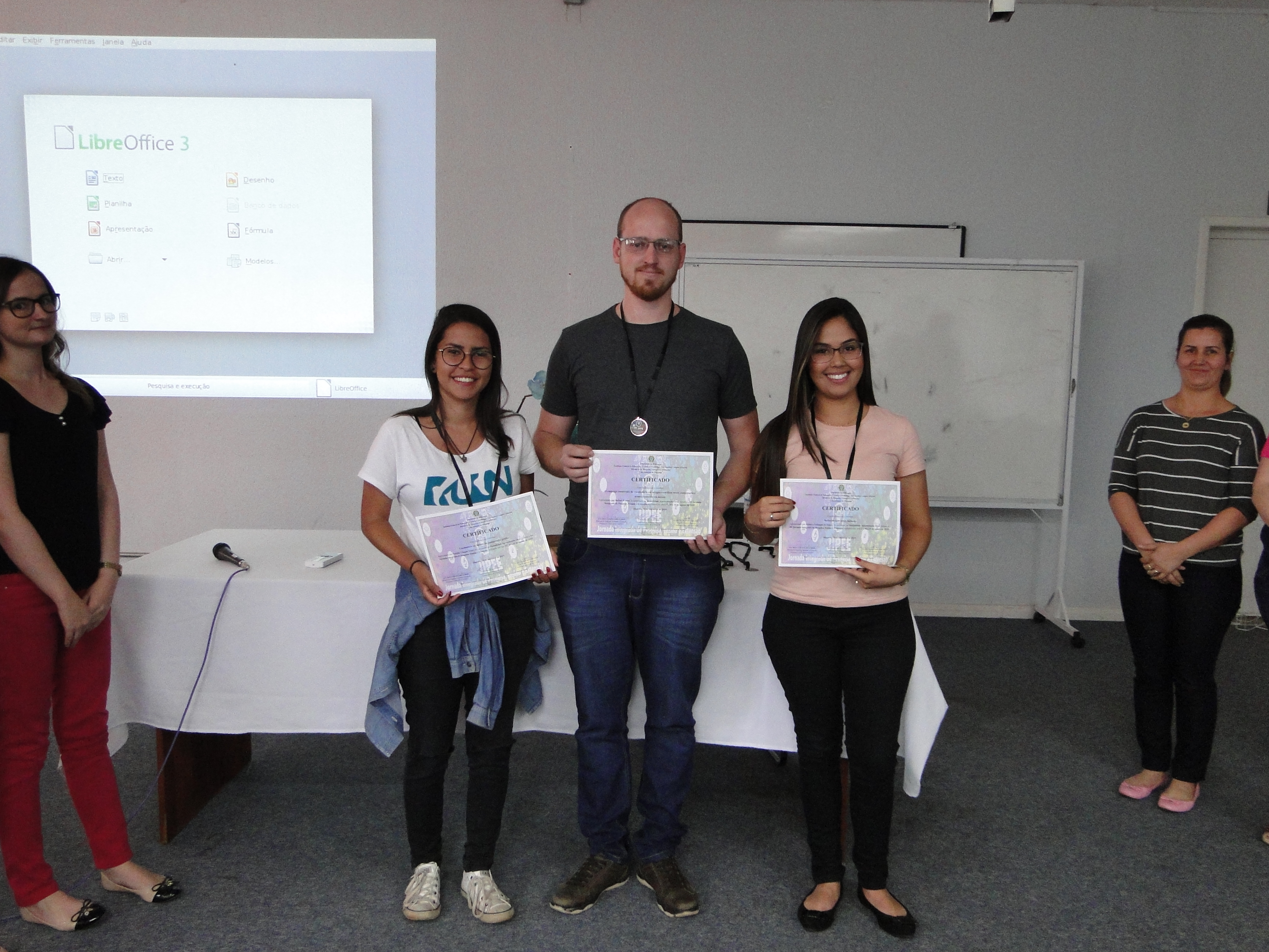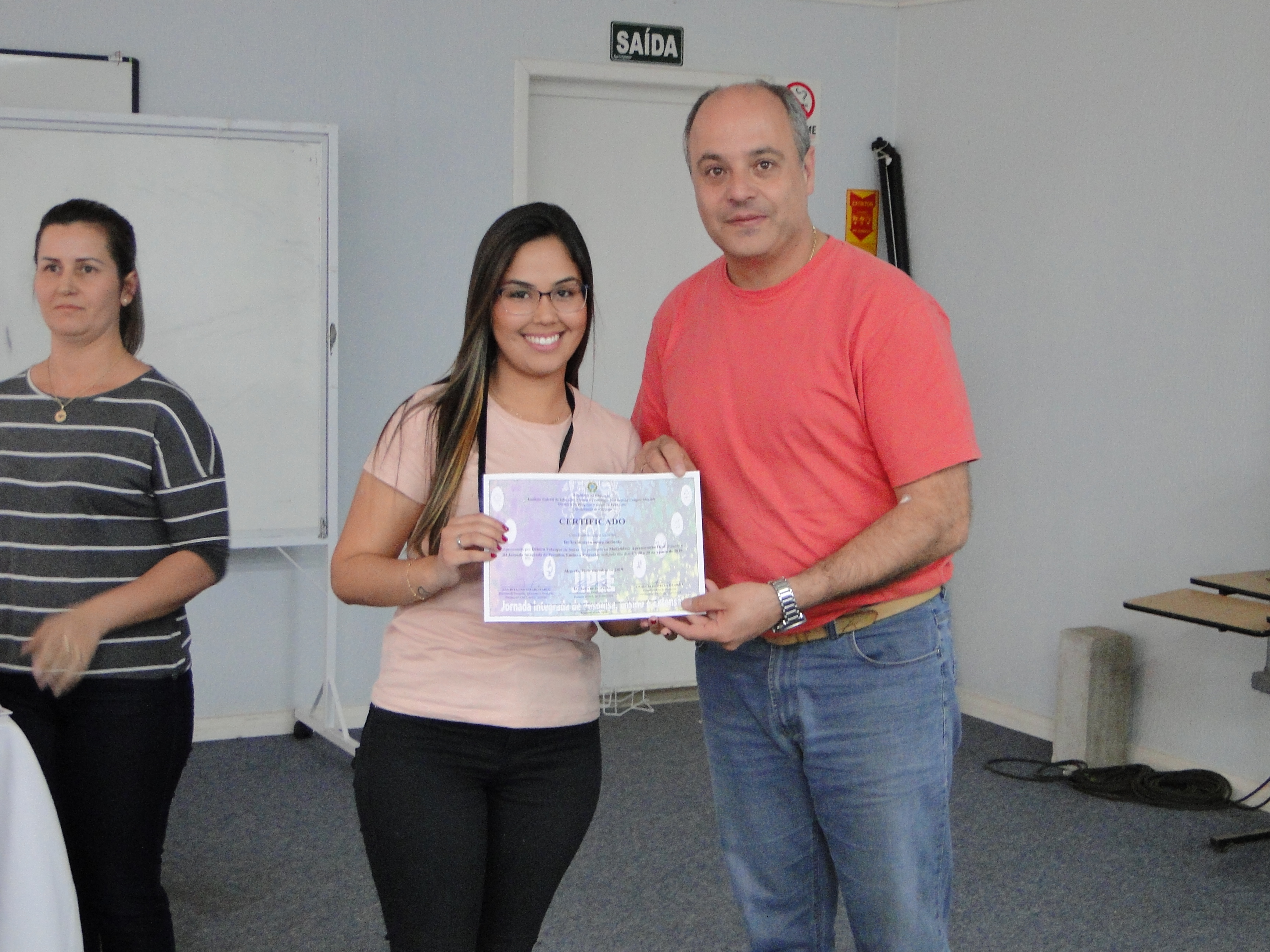 Na última quarta-feira (09), em reunião geral, houve a premiação dos trabalhos apresentados na 3ª Jornada Integrada de Pesquisa, Ensino e Extensão - JIPEE, evento ocorrido nos dias 27, 28 e 29 de agosto. Na oportunidade, a comissão organizadora premiou trabalhos nas três modalidades apresentadas: oral, relato de experiência e pôster.