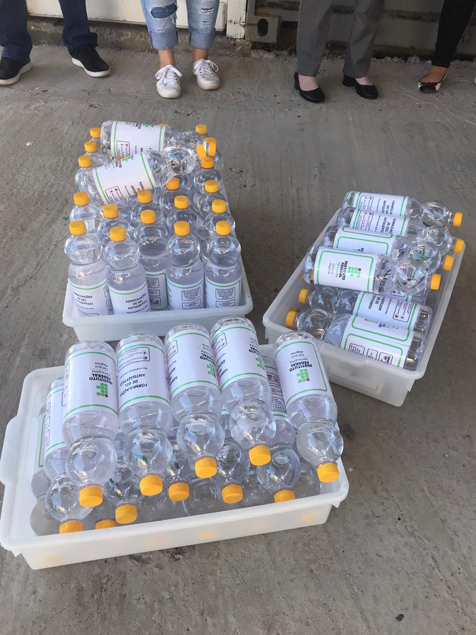 Para o primeiro lote, foram utilizados todos os insumos necessários que estavam disponíveis nos laboratórios do Campus. O IFFar está buscando alternativas para aquisição de mais insumos visando intensificar a produção para o atendimento das demandas do sistema de saúde.