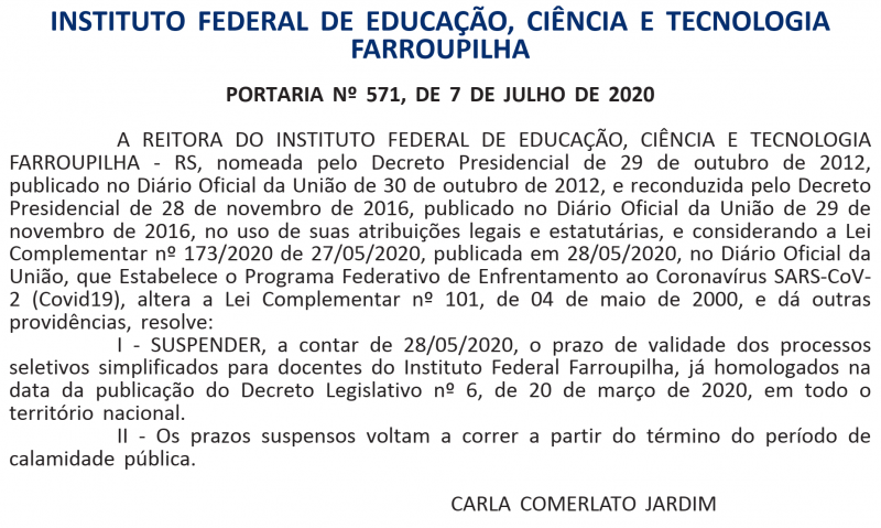 Suspensão dos prazos de validade - processos seletivos simplificados para contratação de professor substituto