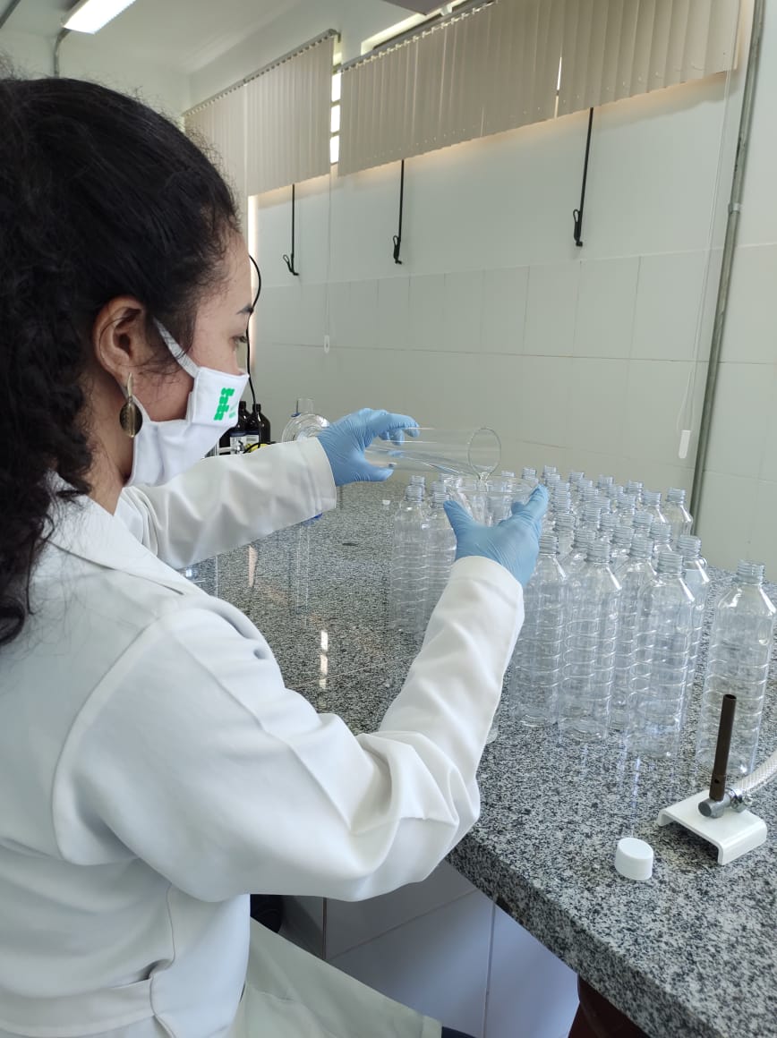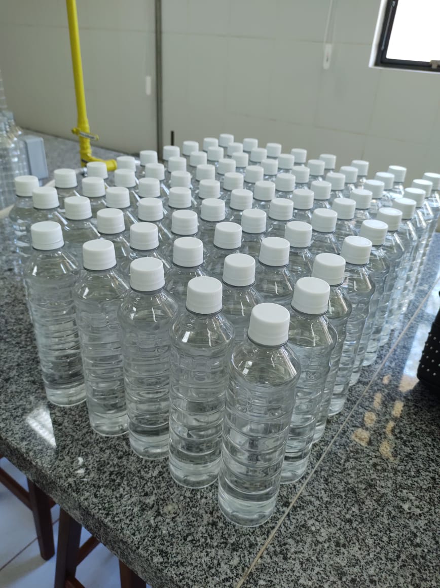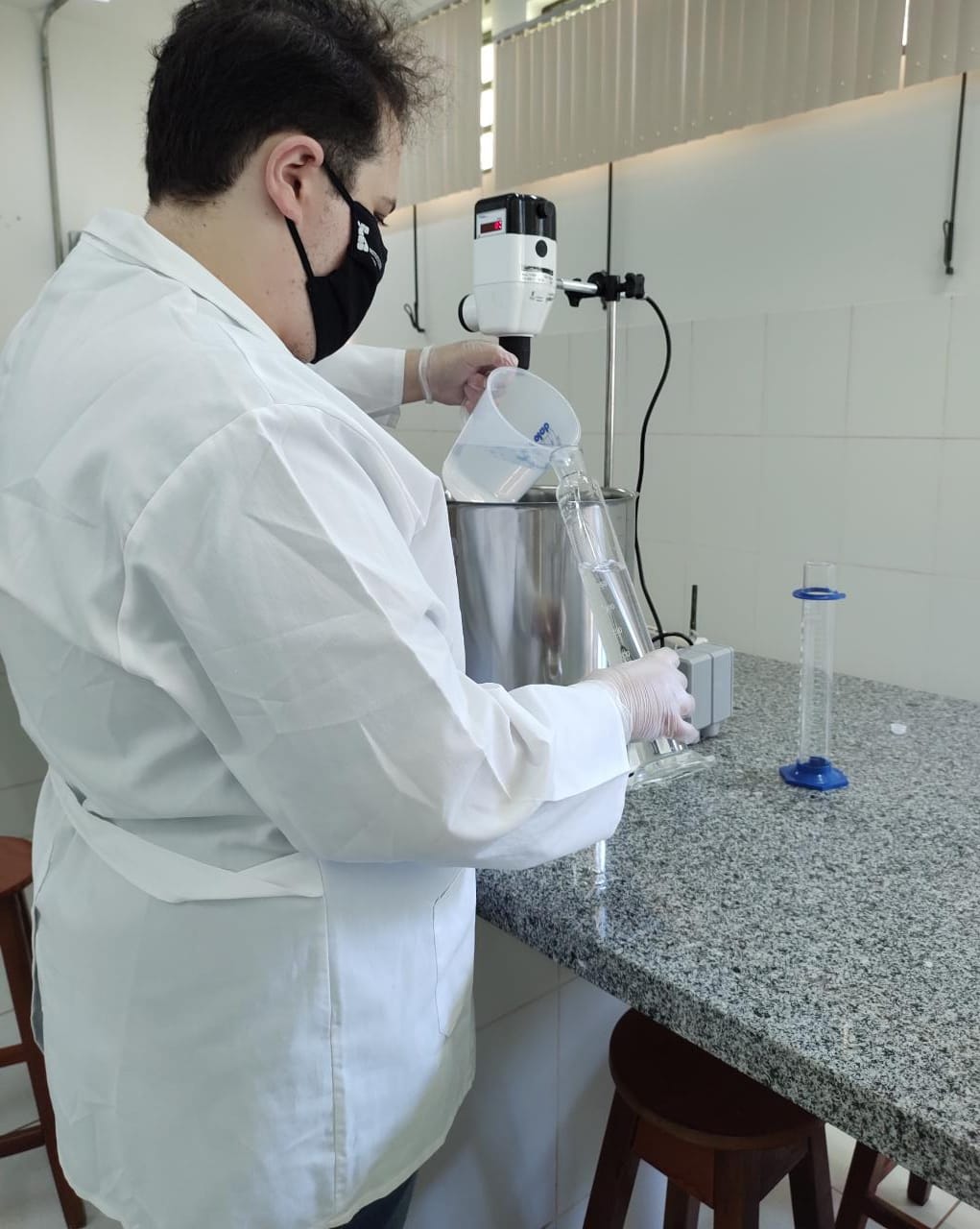 No último sábado, 30/01, uma equipe de servidores se uniu para produzir mais 50 litros de álcool glicerinado 80%. Esse novo lote será utilizado no Campus pelos servidores dos setores essenciais e funcionários terceirizados.