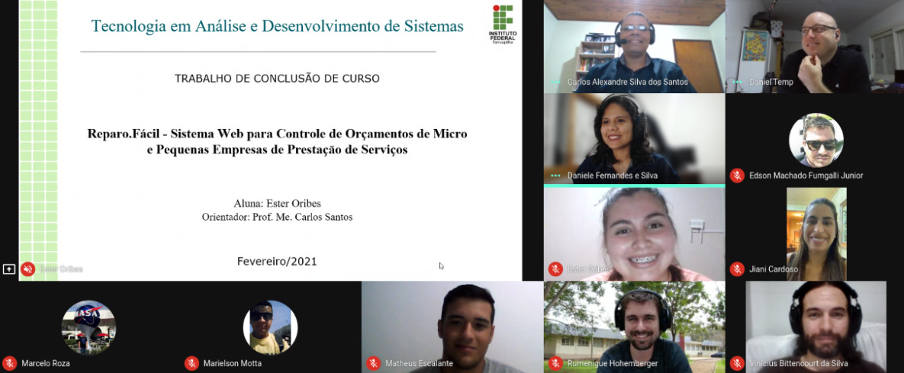 Entre os dias 08 e 10 de fevereiro de 2021, aconteceram as bancas de defesa dos Trabalhos de Conclusão de Cursos (TCCs) dos alunos concluintes 2020 do Curso Técnico em Informática Integrado e do Curso de Tecnologia em Análise e Desenvolvimento de Sistemas. No total, 18 alunos de Informática e 04 de ADS defenderam seus trabalhos.