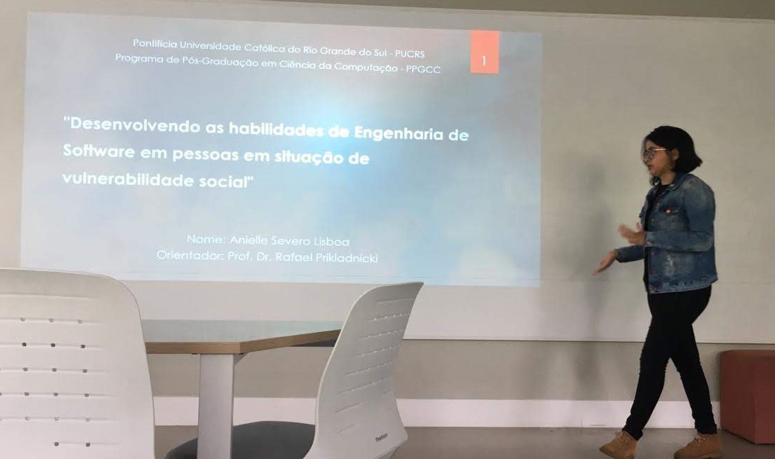 Em fevereiro de 2021, Anielle se tornou Mestra em Ciência da Computação e ainda foi selecionada para o Doutorado em Ciência da Computação da PUC/RS, também com bolsa integral.