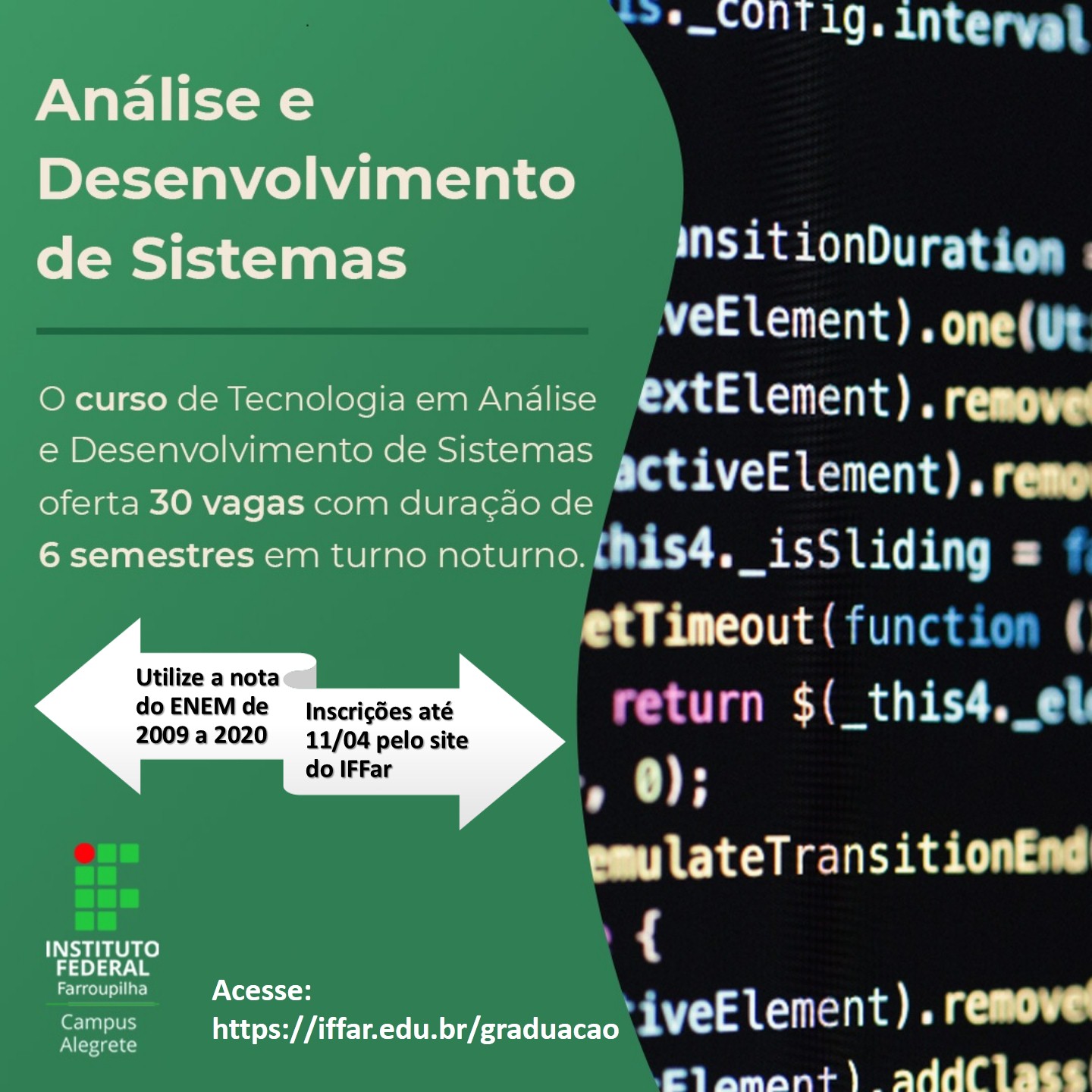 No Campus Alegrete,são mais de 250 vagas distribuidas entre 7 cursos 100% gratuitos: