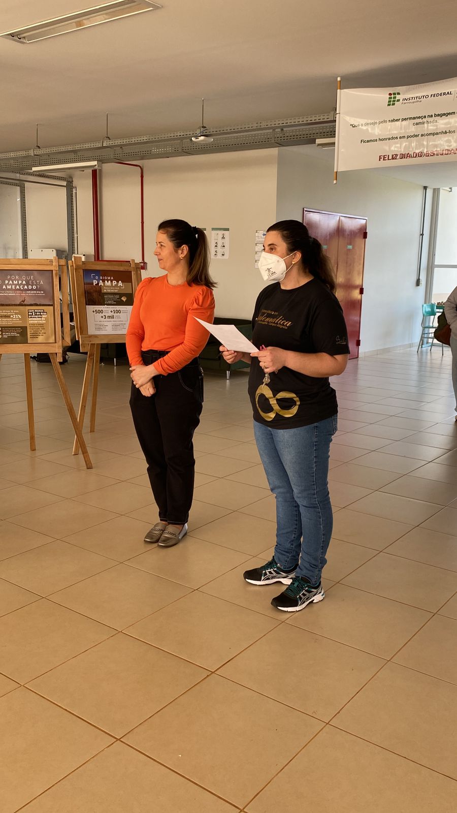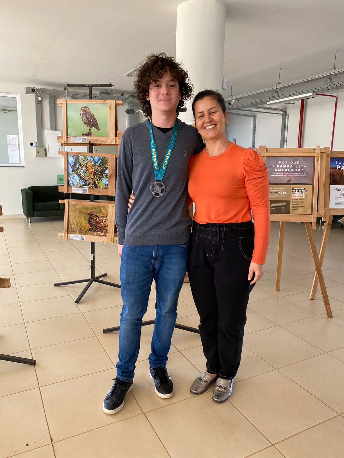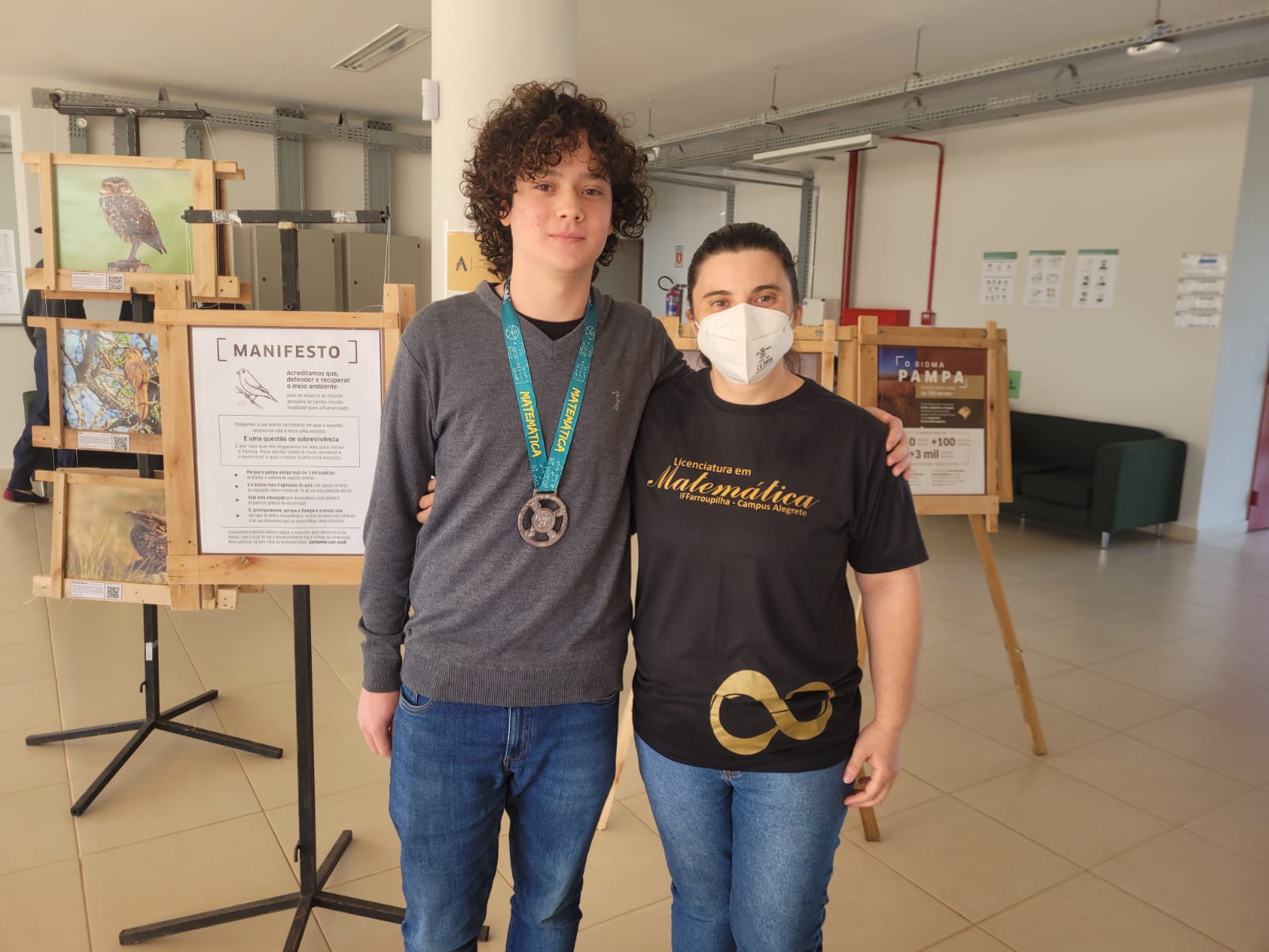 Os alunos do IFFar - Campus Alegrete, Luiz Felipe Scheuer Gomes (Técnico em Informática) e Bruna Rodrigues Souza da Silva (Técnico em Agropecuária), foram agraciados, no dia de hoje, 28, às 13h, no prédio das salas de aula, com a Menção Honrosa referente aos seus desempenhos, respectivamente, na 4ª Olimpíada de Matemática dos Institutos Federais – OMIF e na 16ª Olimpíada Brasileira de Matemática das Escolas Públicas – OBMEP, realizadas no ano de 2021.