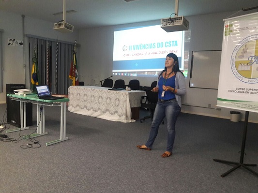No último dia 23 de março reuniram-se, no Auditório Central, os alunos e os professores do Curso Superior de Tecnologia em Agroindústria (TA) para a realização do II Vivências do TA. O encontro, que reúne os alunos do curso de todas as turmas em andamento, tem por objetivo estimular e orientar os ingressantes através da partilha de vivências realizada pelos alunos “veteranos” e também faz parte das ações do Programa de Permanência e Êxito, realizado pela Instituição. A coordenadora do Curso, prof. Josiane Pasini iniciou o encontro mostrando o vídeo Institucional e, em seguida, enfatizou a importância da troca de experiências entre os alunos e de momentos de confraternização e aprendizado. A abertura musical ficou por conta da prof. Yasmim Leães e, em seguida, o Coordenador de Assistência Estudantil (CAE) Anderson Fetter, na ocasião representando a Direção Geral, deu as boas-vindas aos alunos e explanou as diversas ações da CAE.